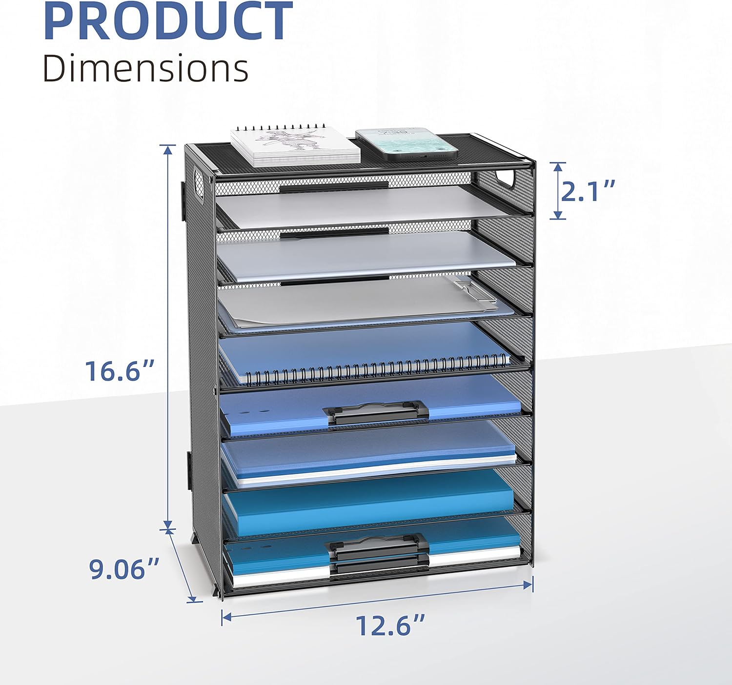 Our desktop paper tray organizer is big enough to hold more files and classify your paper more detailed. The 9-Tier large capacity design can meet your storage needs to the greatest extent.