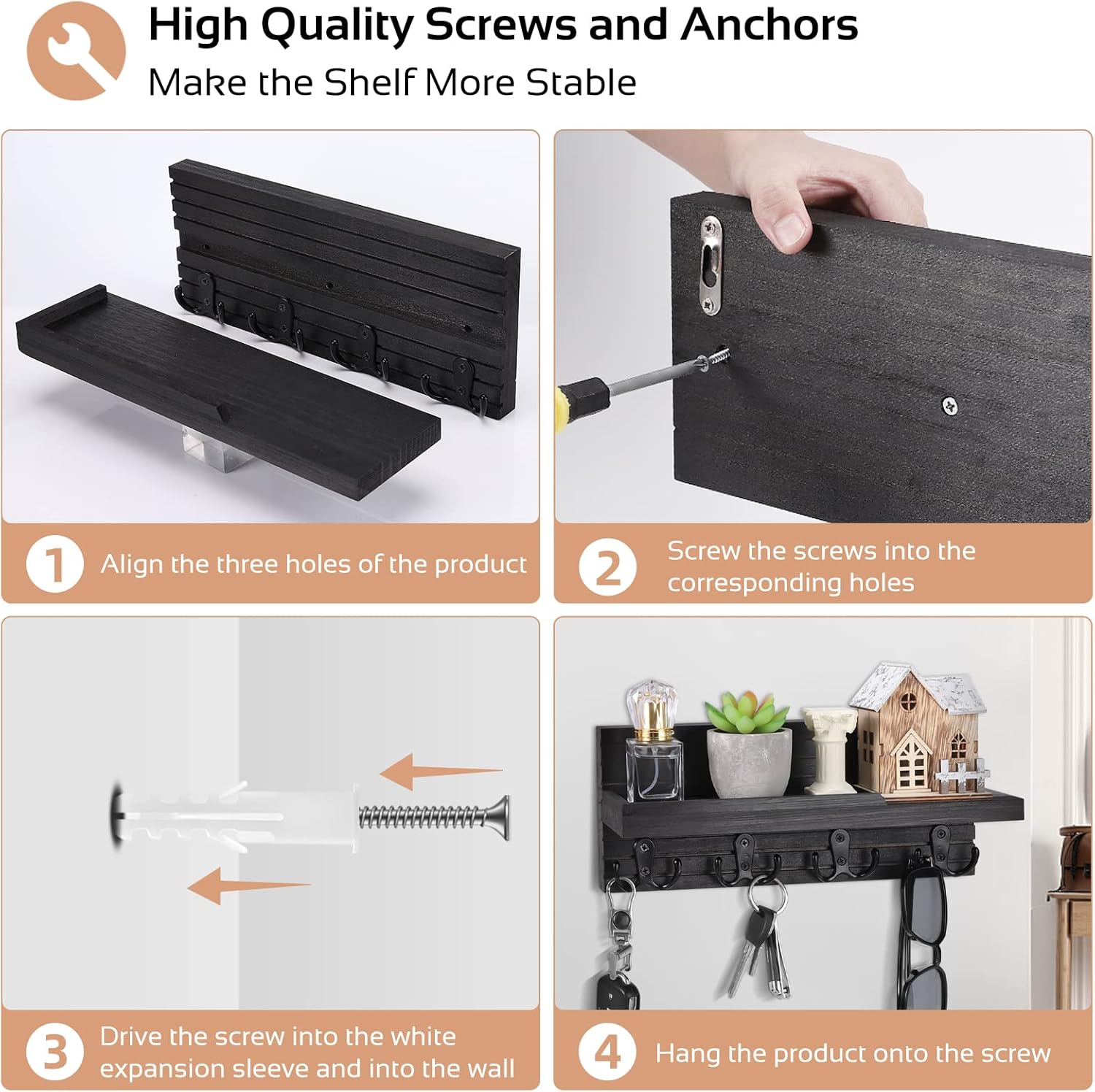 Easy Installation – It contains all the necessary installation hardware,such as screws and pins,and can be installed quickly whether in your entrance,hallway,kitchen or office-this handy keychain is a great addition to any room.