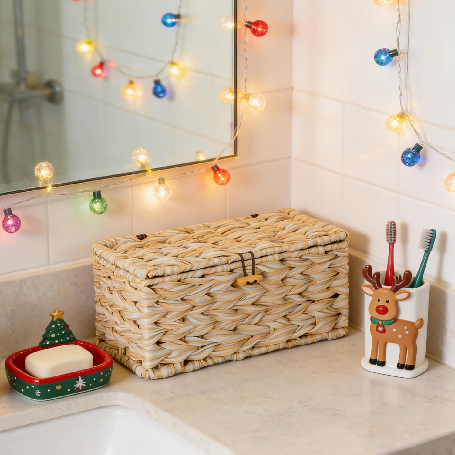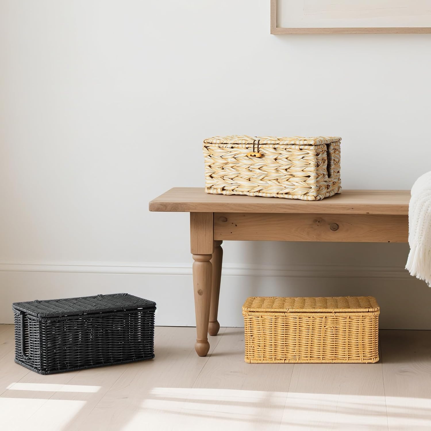Child and Pet Friendly Cord Box Hider: Designed with family safety in mind, this cord management box keeps electrical hazards out of reach. The sturdy rattan construction and secure design offer peace of mind for homes with childs and pets
