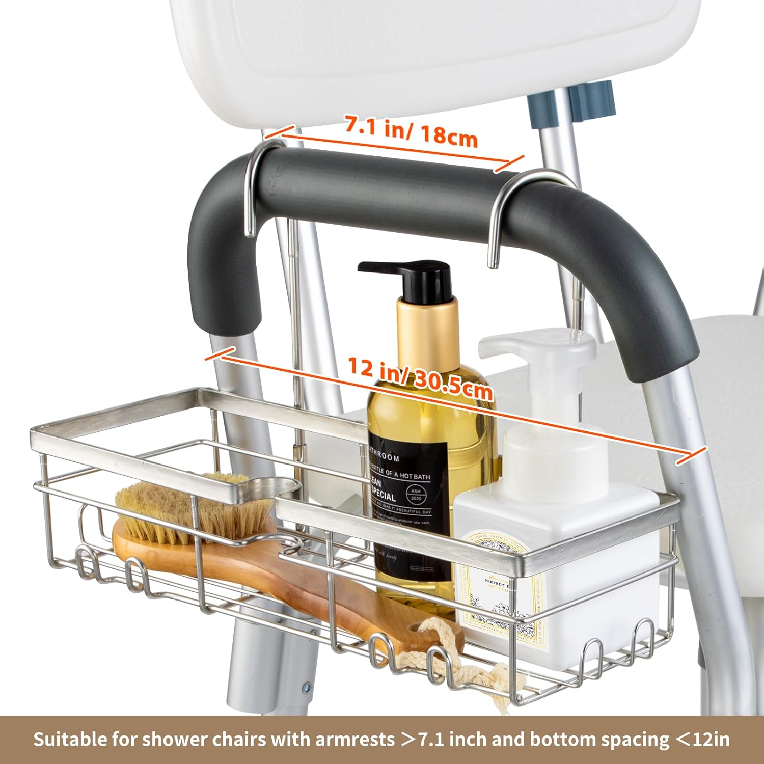 DELLAN Hanging Shower Caddy, Shower Rack with Hooks for Shower & Bath Chair, Bathroom Shower Basket for Elderly, Pregnant, Handicap, Patient