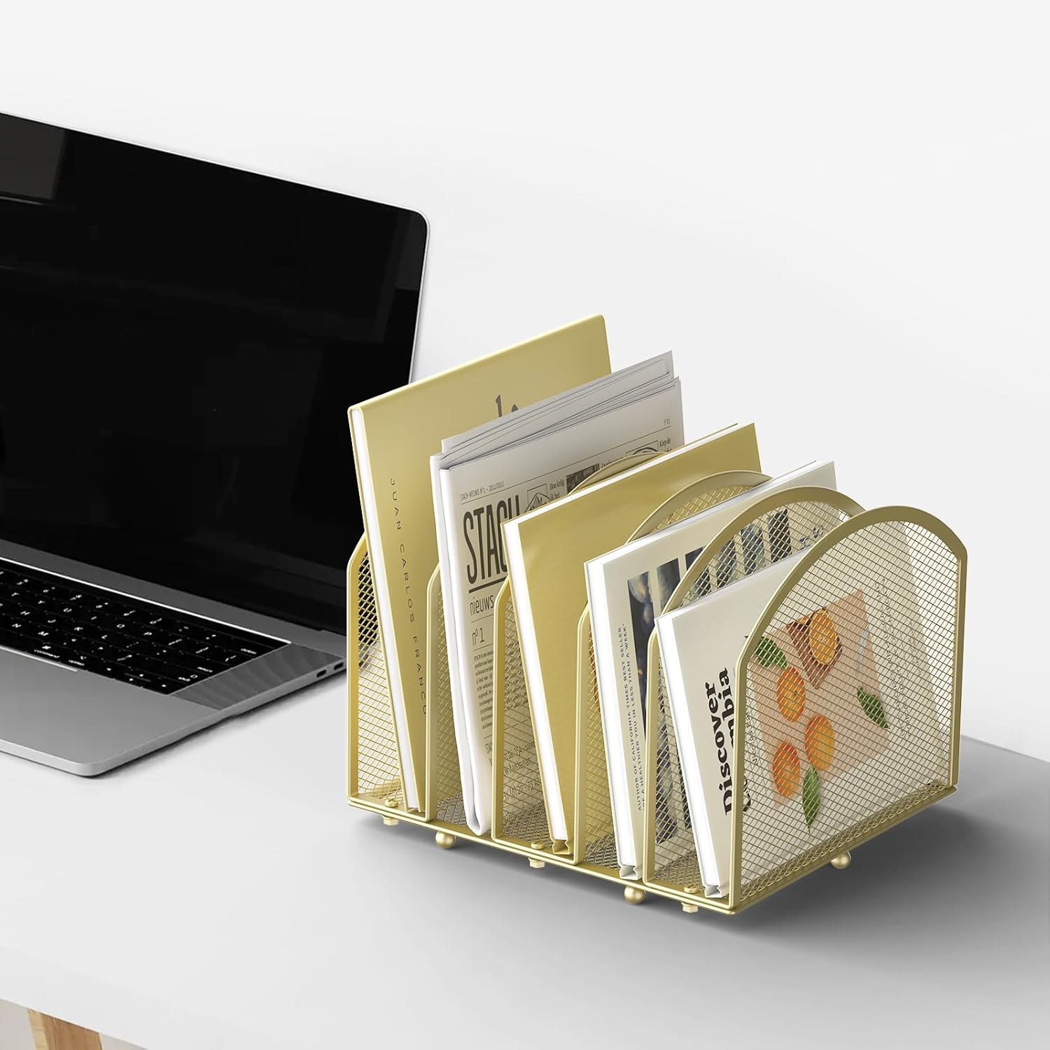 Desk File Organizer 5 Sections Desktop Organizer File Sorter Office Organization File Folder Holder for Office School & Classroom (Gold, 5 Section – 1Pack)