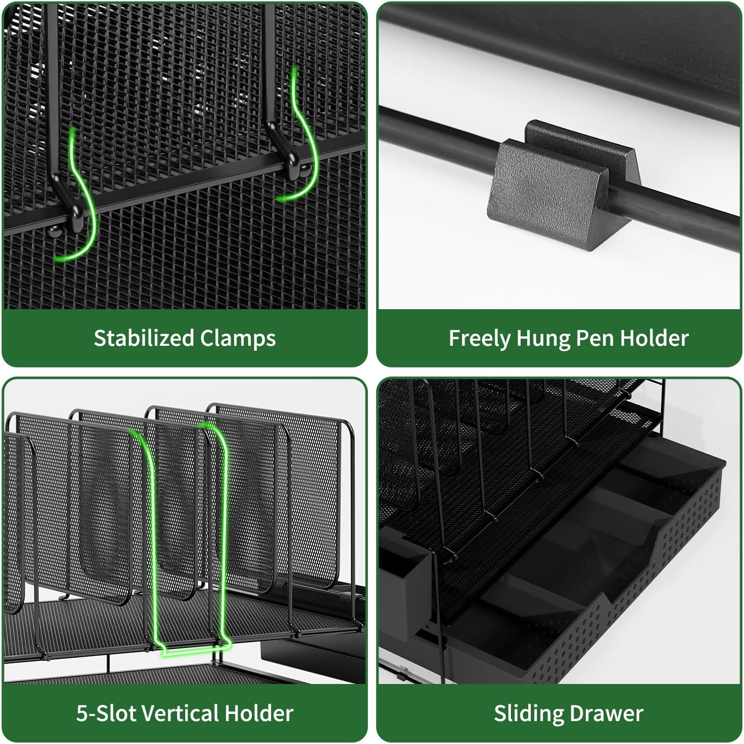 { Sturdy & Durable } Made of premium metal, the workspace organizer is sturdy and durable for a long-lasting use, providing a stable desk top storage solution. Smooth surface and rounded edges are designed for safe use and will not damage documents