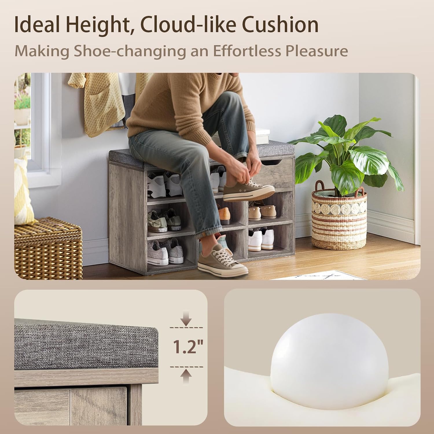 【Multi-purpose Shoe Bench】Hide your keys, wallet, gloves, sunglasses, flashlight and dog leash in the small drawer. Everything is easy to reach before going out. 8 cubbies are available for 6-8 pairs of shoes. To be entryway bench, window seat and bed-end stool for entry porch, front door, living room, bedroom