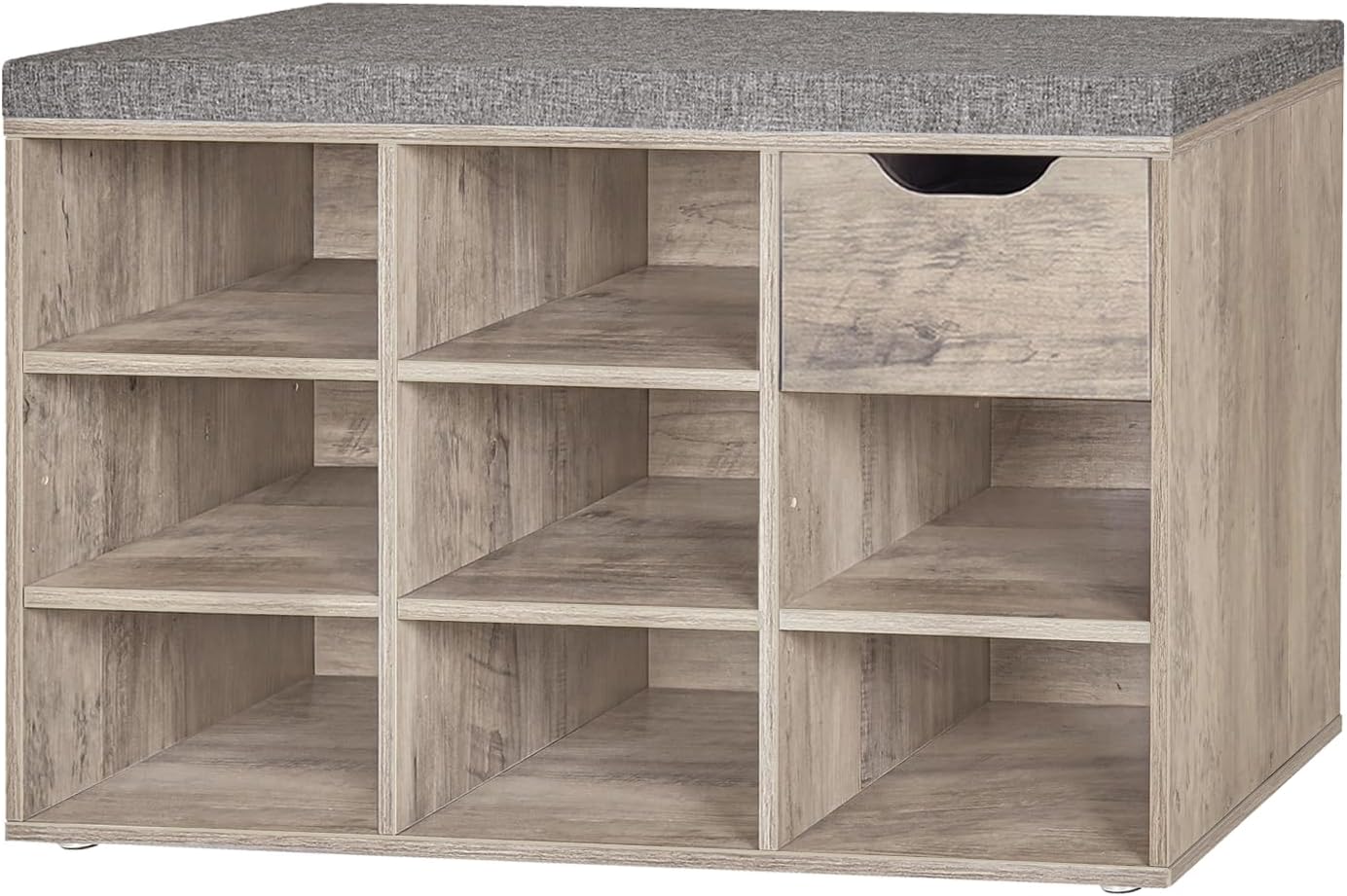 DINZI LVJ Shoe Bench,Entryway Storage Bench with Drawer and 8 Cubbies,Cubby Rack Adjustable Shelves,Shoe Organizer Cabinet for Living Room,Bedroom,Mudroom,Closet Garage,Greige