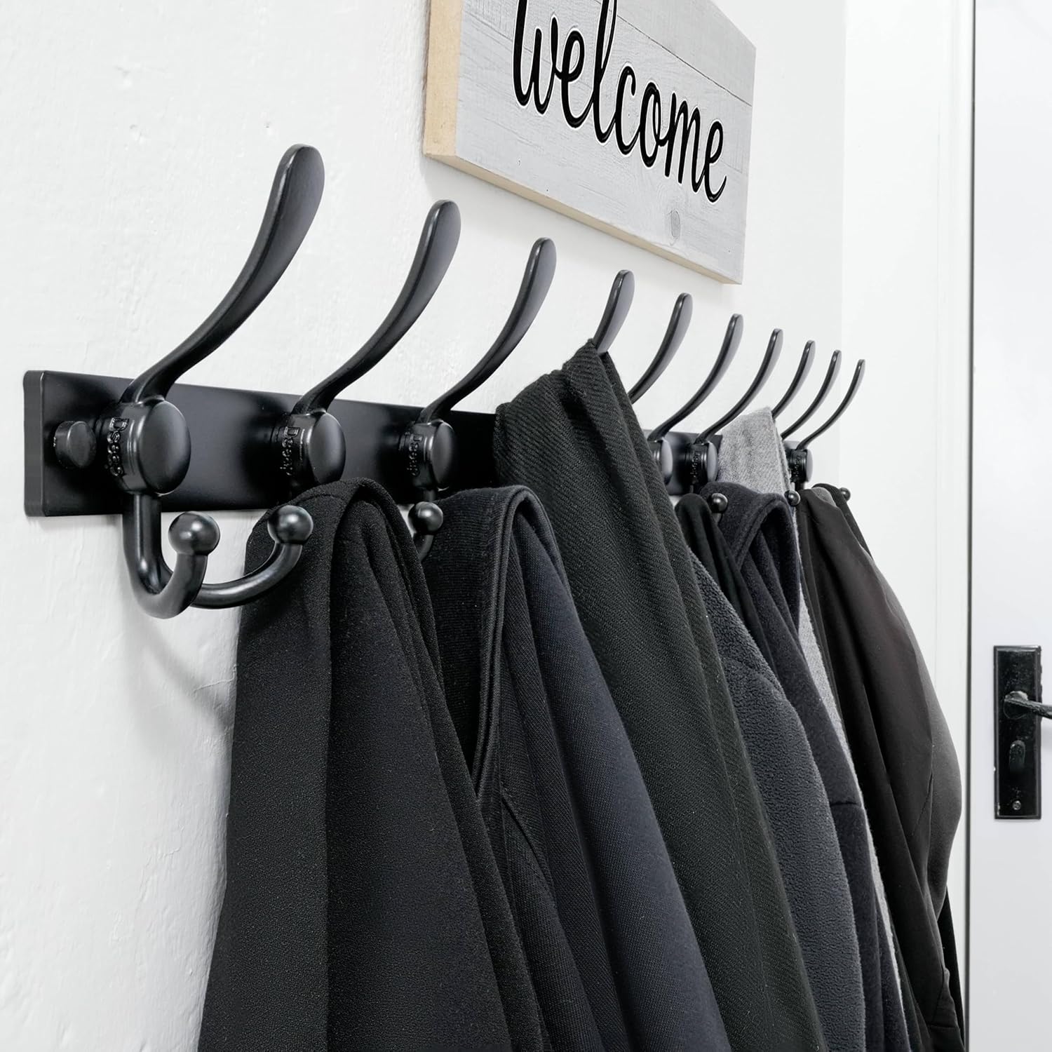 【16” Stud Ready, 3X Stronger Hold:】 The wall coat hooks features 16” stud-mounted spacing. Holds 50 lbs. Easy to install in 5 mins. (drywall anchor included)