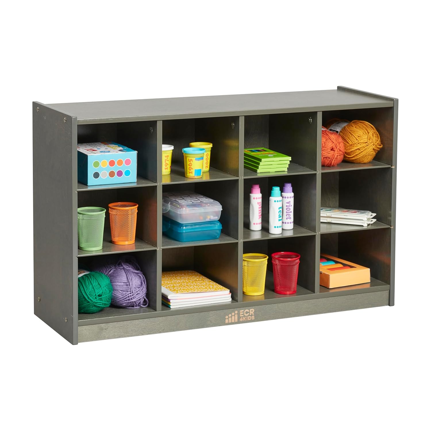 ECR4Kids 12 Cubby Mobile Tray Storage Cabinet, 3×4, Classroom Furniture, Grey Wash