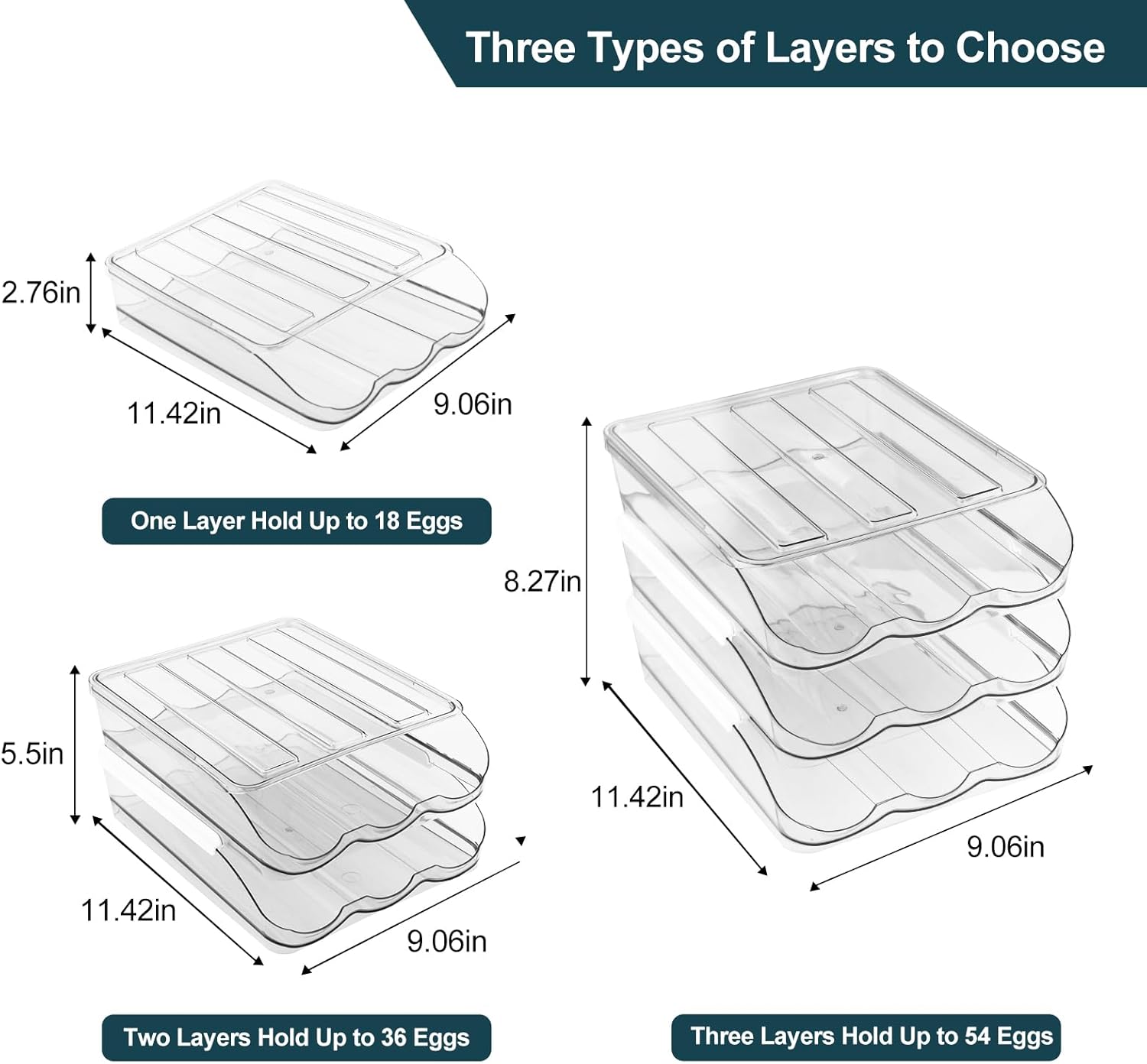 Size and Capacity Wide Application:Two layers egg hold size 11.42″L x 9.06″W x 5.5″H. Each layer can hold 18 eggs, Two layers can hold up to 36 eggs. Perfect as egg container for refrigerator, kitchen, cabinets, table and restaurant.