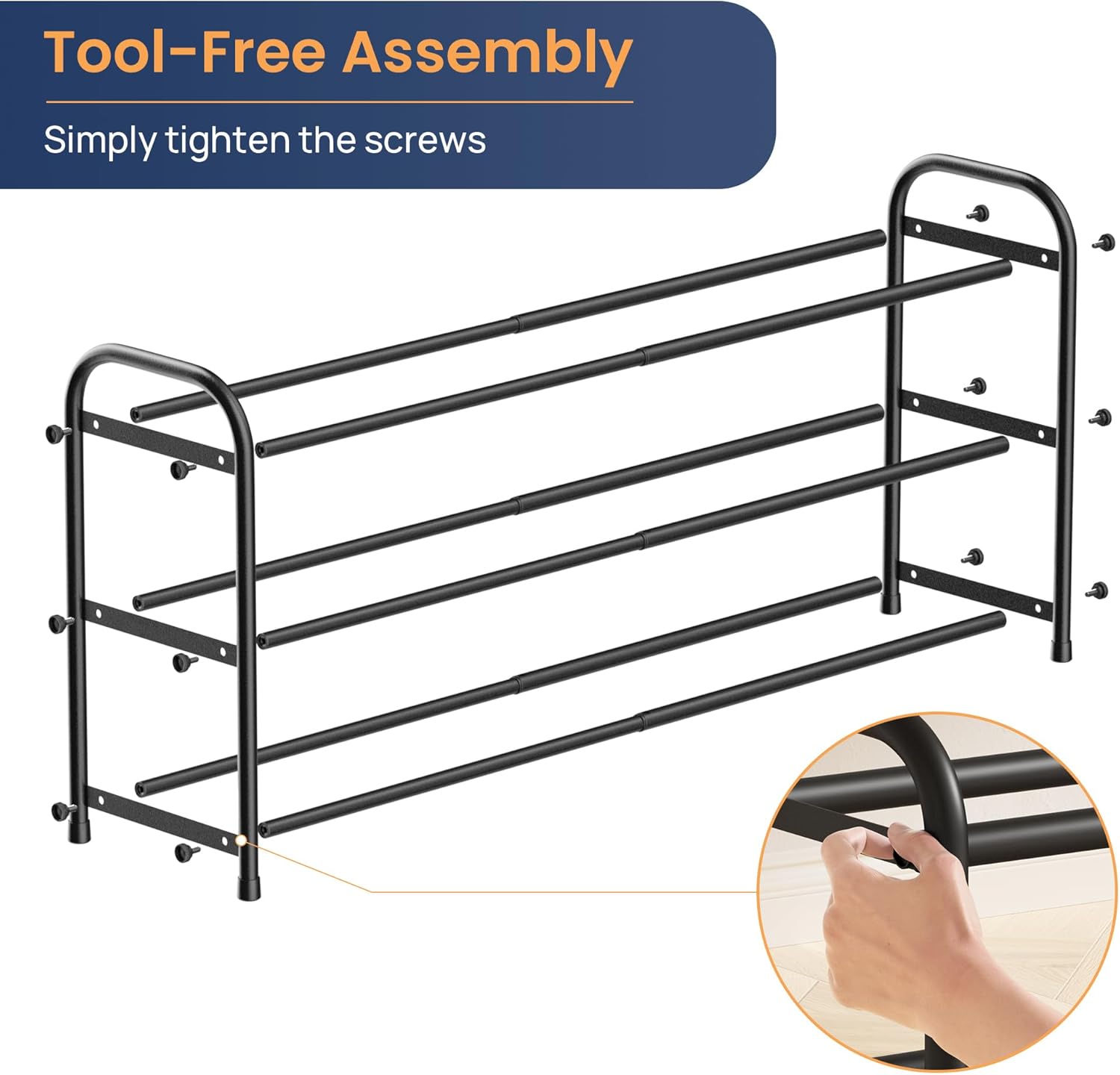 ENJOYBASICS Expandable Shoe Rack, 3 Tier Adjustable Shoe Organizer Shelf for Closet, Black Metal Free Standing Shoe Rack Storage for Small Space, Entryway