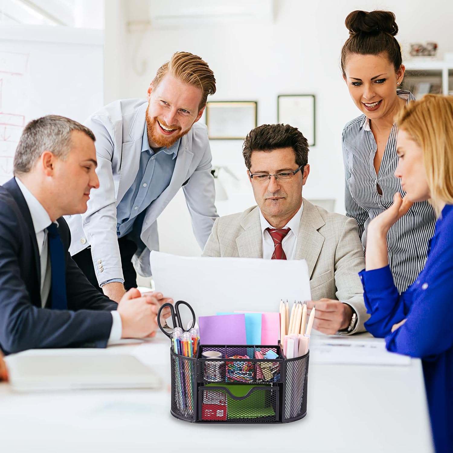 Quality Organizer: This organizer is made of powder-coated metal, which will not be bent easily. There are non-skid pads on the bottom of the pencil holder, which help to avoid slipping and scratching.