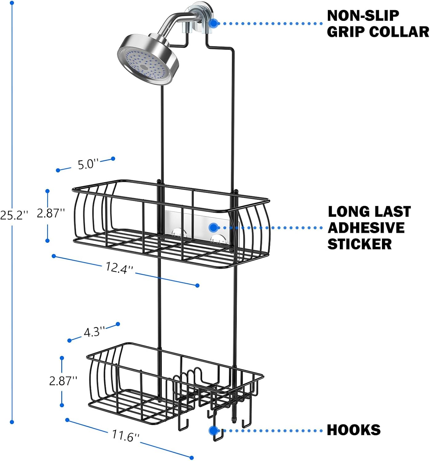 Fits Most Shower Heads: Uniquely designed to fit most standard sized shower heads for a seamless look in the shower.Hang the shower organizer easily over the shower arm-NO installation, hardware, or surface drilling damage to worry about