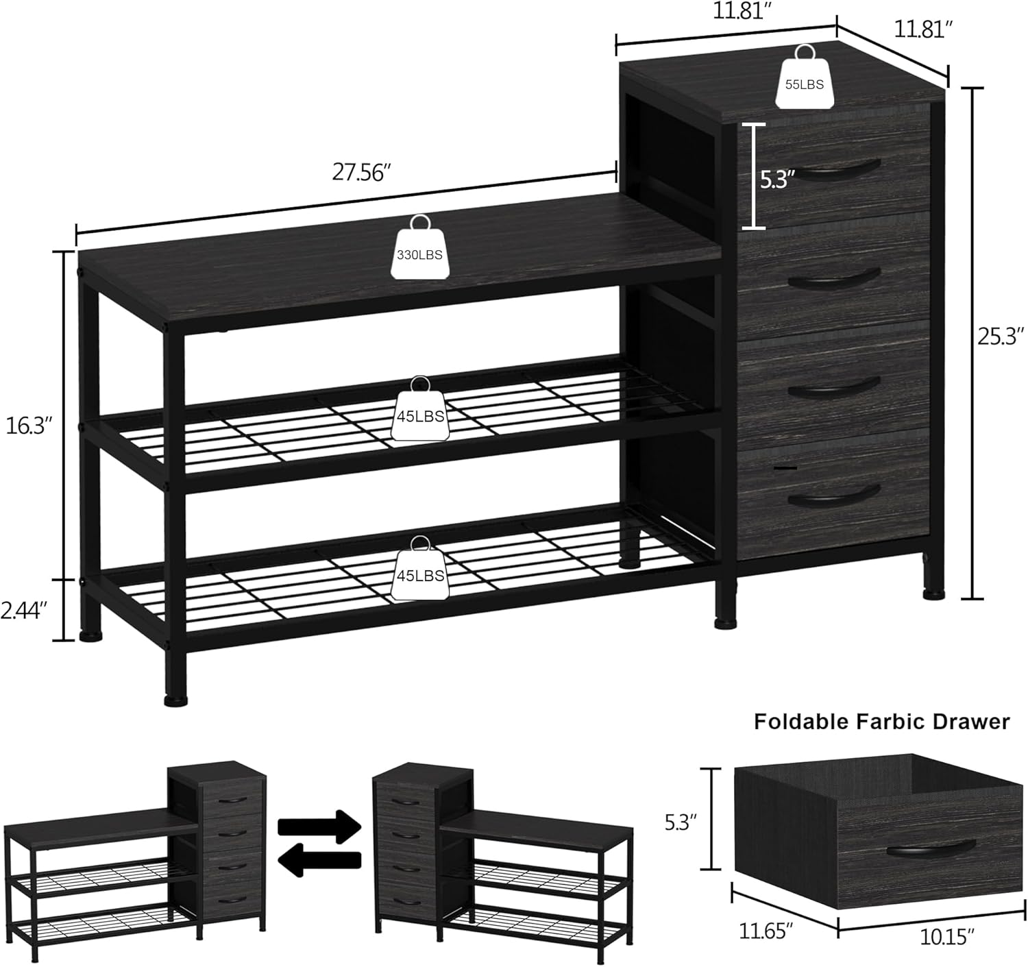 EXOTICA 3 Tier Entryway Bench Shoe Storage Bench with 4 Fabric Drawers Metal Frame and Wooden Board Shoe Rack Bench with Seat for Entryway Hallway Front Door Doorway