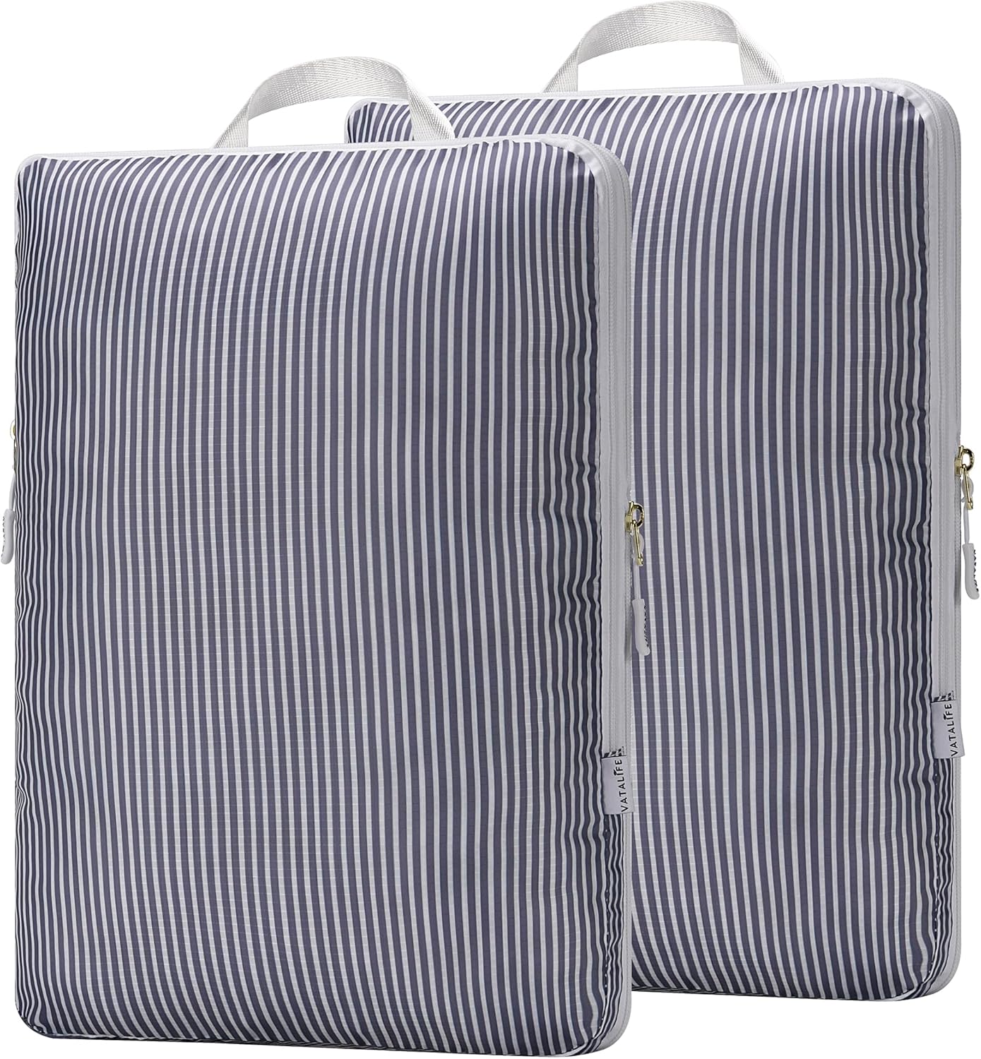 Extra Large Compression Packing Cubes for Checked Luggage, Lightweight Suitcase Organizers & Space Saver Bags – Travel Cubes for Packing – Travel Essentials – 2 Piece Set, X-Large – Grey Stripe