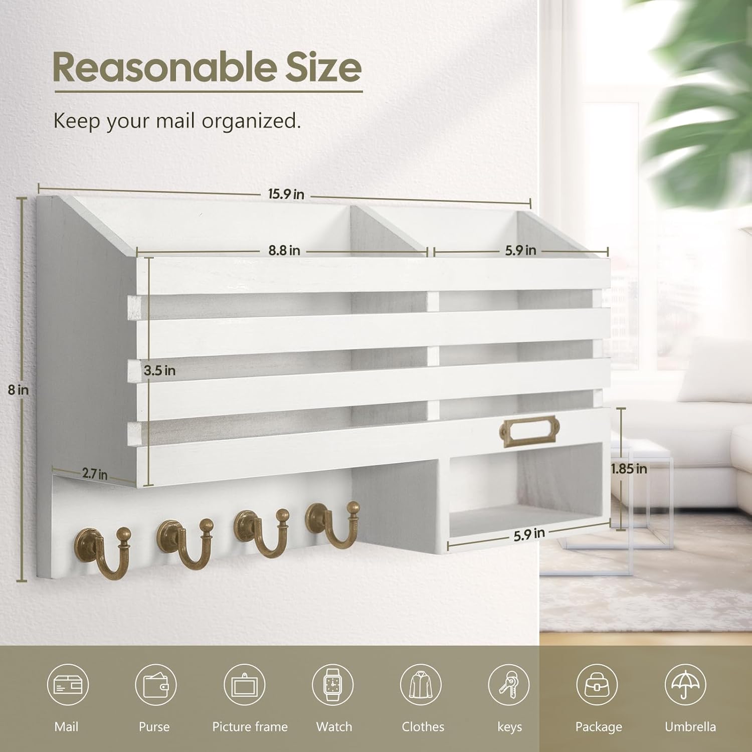 Chic Farmhouse Decor: Wall-mounted Design. This mail organizer wall mount is an elegant decoration in your house, hanging in the kitchen, entryway, hallway, mudroom, living room, etc. Blend in with the style of your home or apartment, add comfort and you’ll be like it.