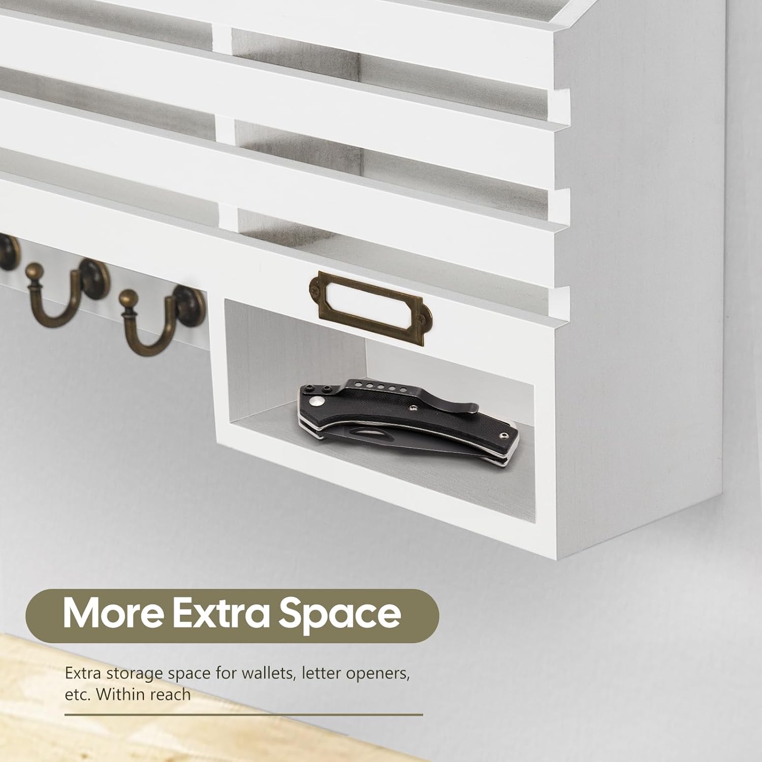 FifthQuarter Key Holder for Wall: Easy Mounted Key Rack and Mail Organizer with Store Shelf and Four Sturdy Keys Hooks Decor in Kitchen|Farmhouse|Entryway|Mudroom (White)