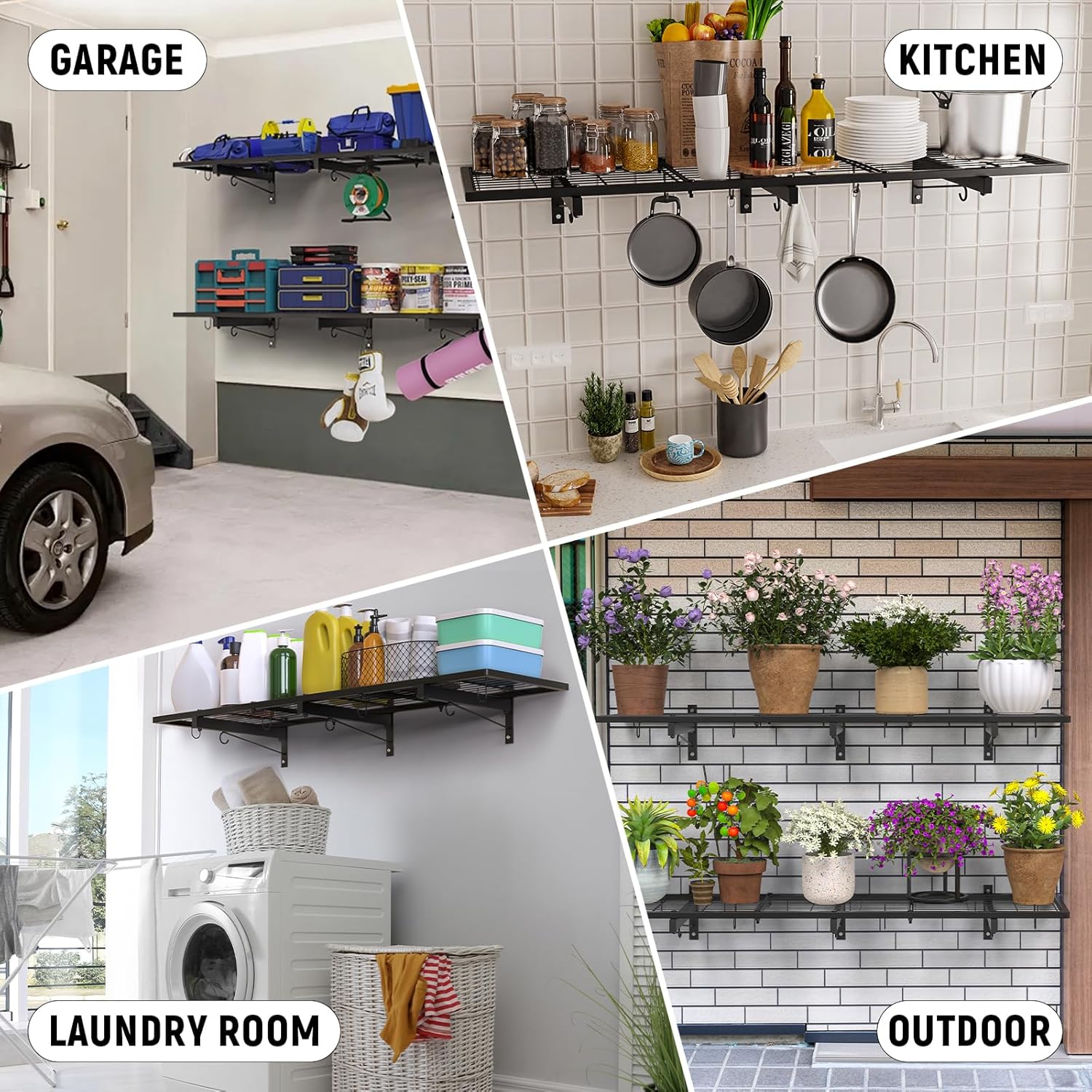 EASY WALL SHELF INSTALLATION: Garage shelving unit comes with all necessary mounting hardware and clear instructions. Wall-mounted storage rack comes with two types of screws suitable for concrete, wood and brick walls. Transform a messy garage into an organized space in 30 minutes!