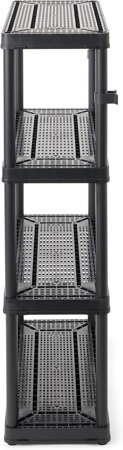 Gracious Living 4 Shelf Fixed Height Ventilated Medium Duty Storage Unit 14 x 32 x 54.5″ Organizer System for Home, Garage, Basement, & Laundry, Black