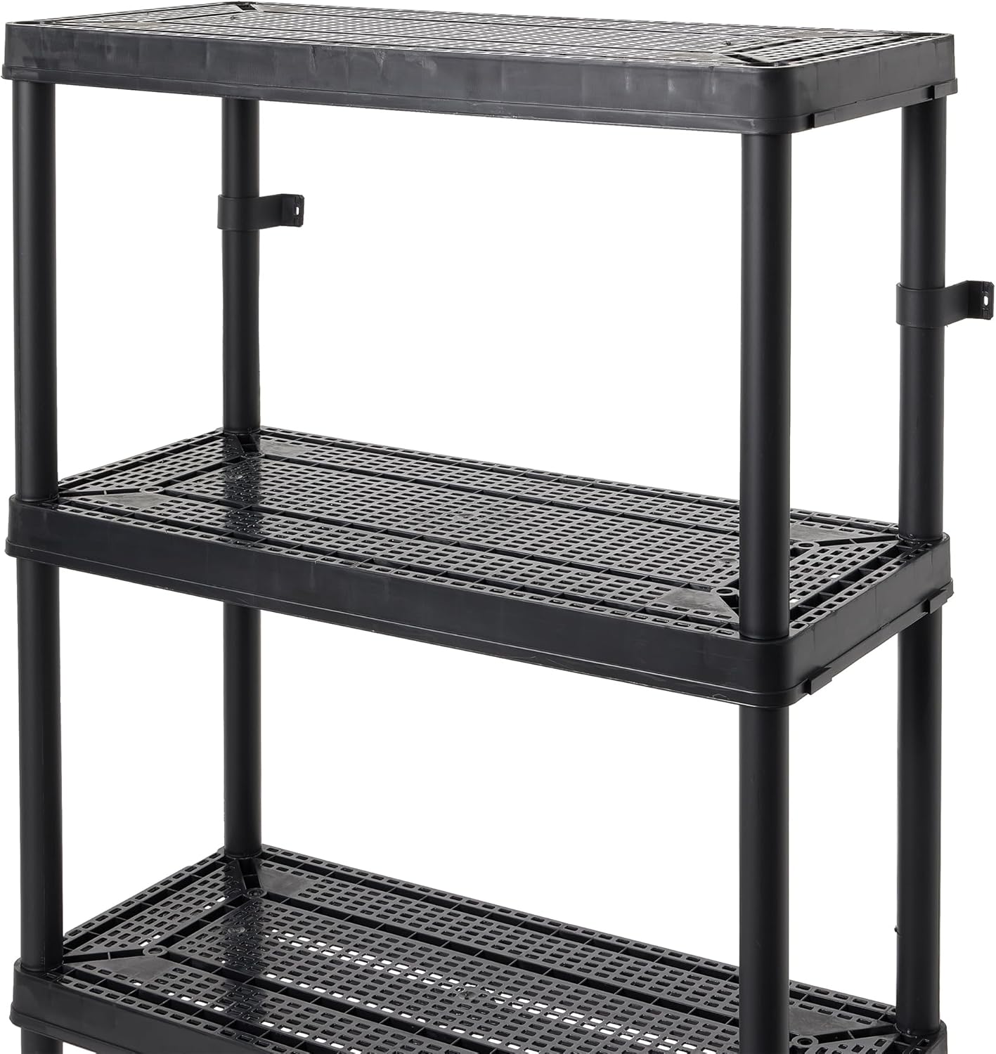 Long-Lasting Use: Constructed from durable plastic, this utility rack resists rusting, denting, and peeling; No tools required for assembly; Wall mount this garage shelving using the included brackets
