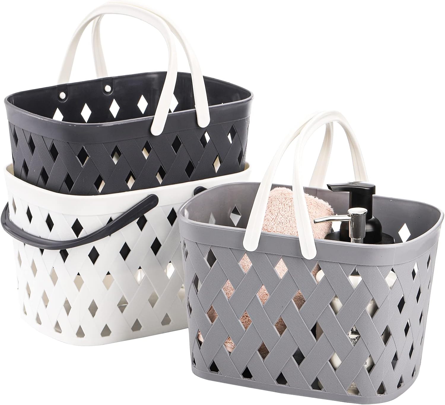 Hacaroa 3 Pack Portable Shower Caddy with Handles, Plastic Tote Storage Basket Toiletry Organizer Bin for Holding Soap, Shampoo, Cosmetics, Bathroom, College Dorm, Kitchen, Camp, Gym, 3 Colors