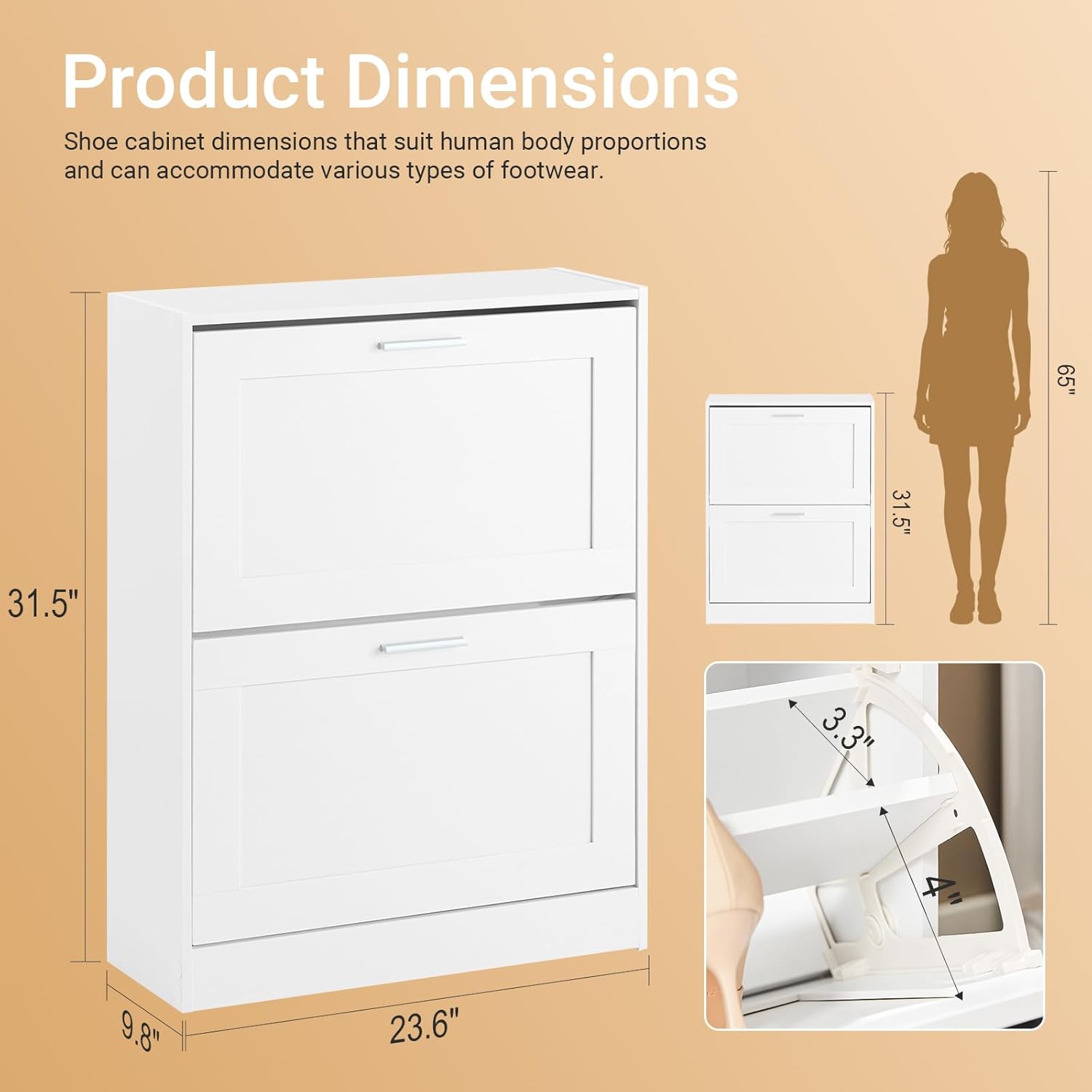 Enhanced Safety & Stability: Crafted from premium MDF, includes anti-tipping kits and smooth edges for child safety. The closed cabinet structure ensures shoes stay dust-free, while its narrow profile fits snugly against walls in any front door or hallway space