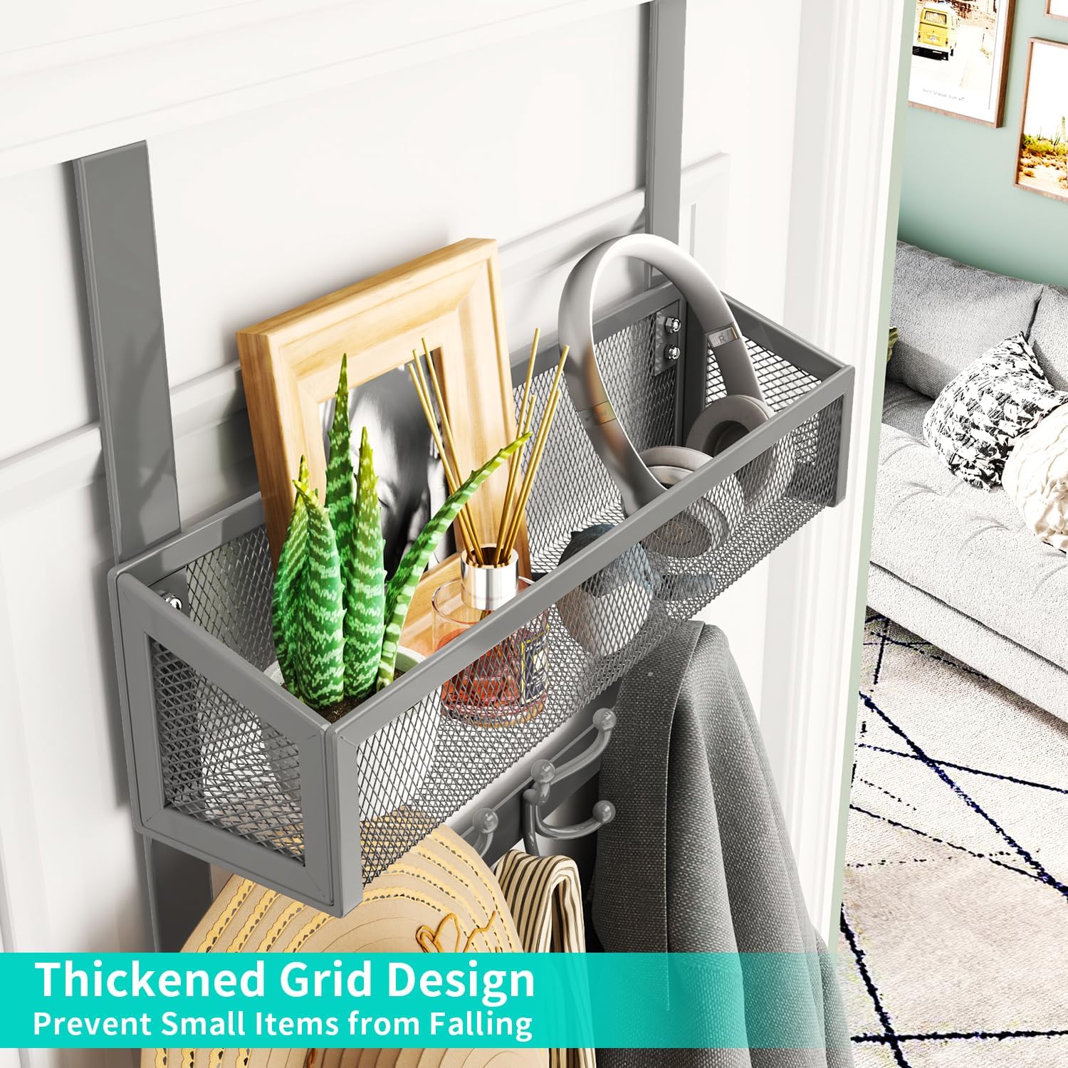 [Stylish Designed Over Door Organizer]: Our door hooks come with a basket, mesh design door hooks for hanging can hold keys, pens and other items, ensuring that these items will not slip out