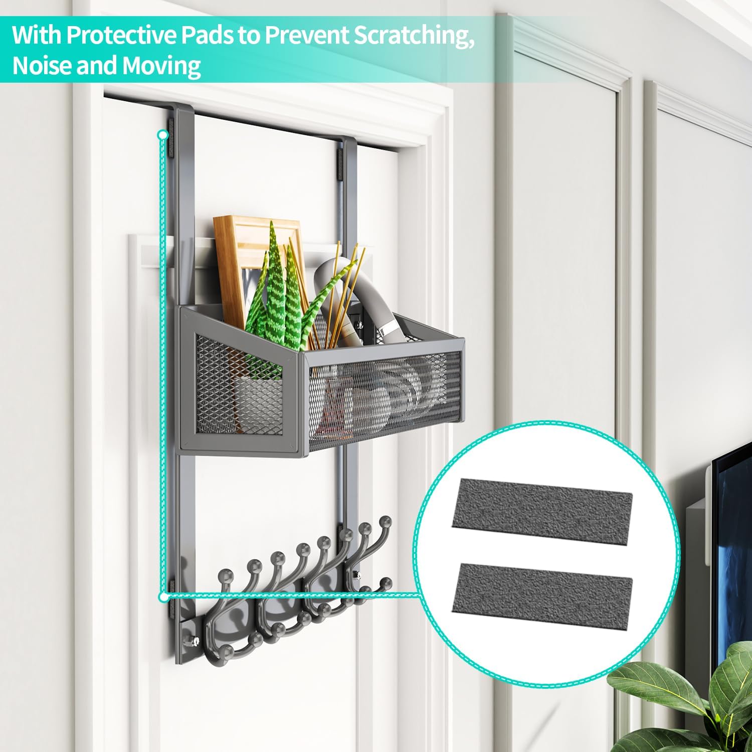 [Protective Pads]: Back of door organizer comes with 4 protective pads to prevent damage to the door and avoid noise when closing the door. Note: Please check your door before purchasing to make sure your door gap above 2 mm thick