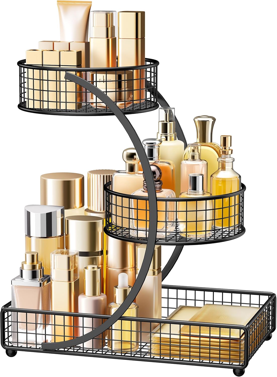 HBlife Makeup Organizer for Vanity, 3 Tier Metal Bathroom Countertop Organizers Skin Care Storage, Bathroom Counter Shelf Skincare Holder Perfume Cosmetic Display, Black