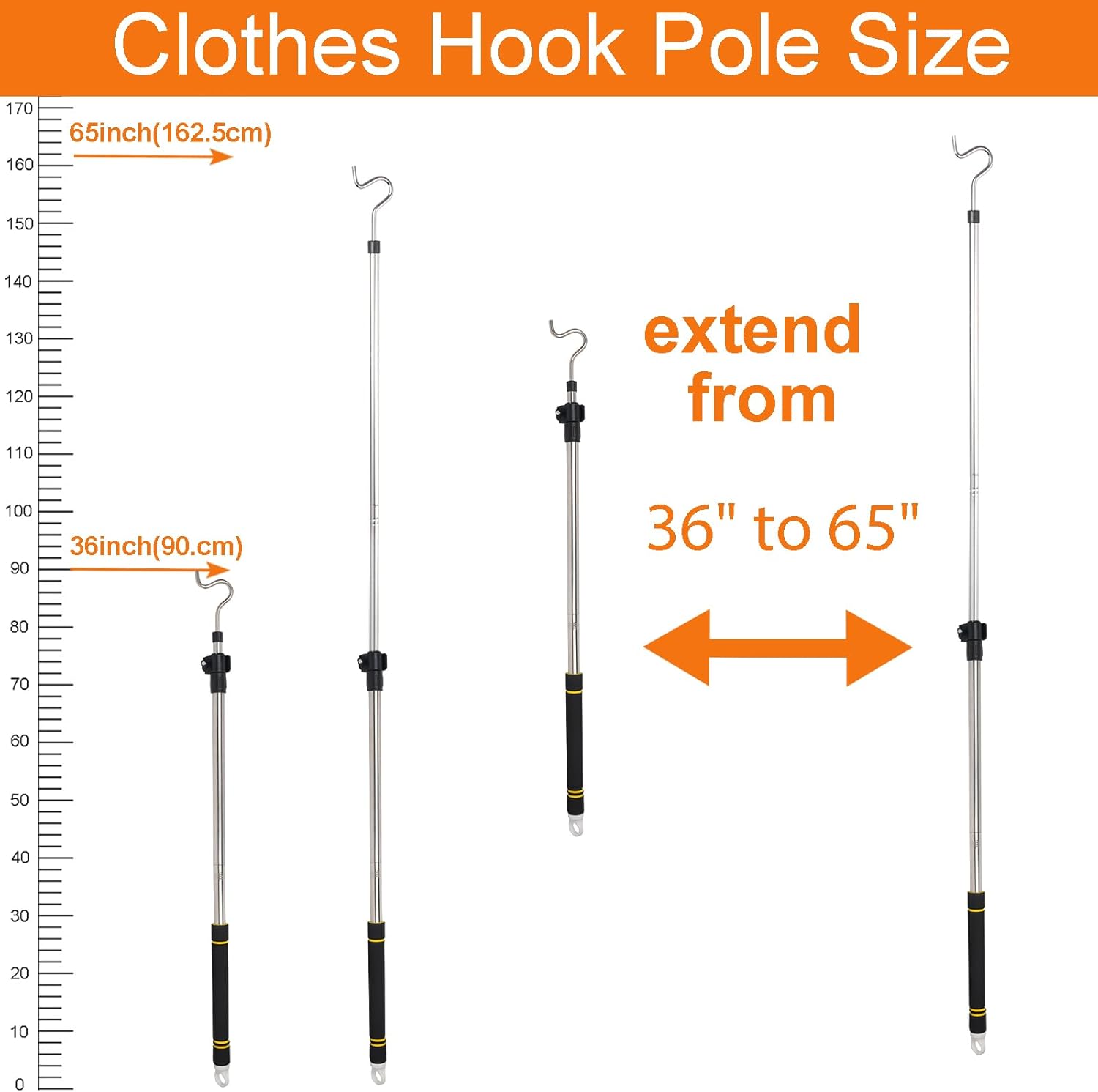 【PRODUCT PARAMETERS】-The drying pole can telescope between 32 inches and 64inches .Three combinations to choose from: one clothes s hooks pole for closet, two hanger poles, and four clothes poles, you can put one wherever you need to use it, both indoors and outdoors. clothes hook pole also can used the pole to remove vines from garden