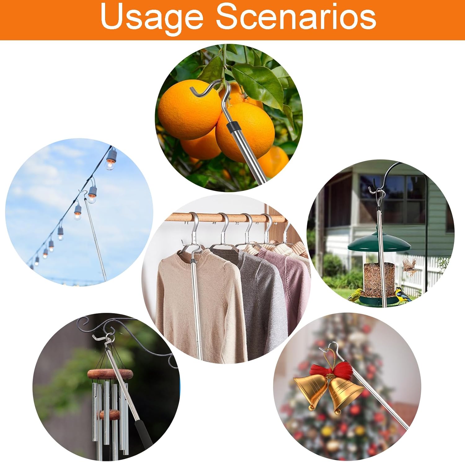 【MULTI-SCENE and MULTI-PEOPLE】Telescoping pole with hook suitable for adults, seniors and children, with adjustable size. Clothes hanger pole can be used to exercise children to clean up the ability of the house, suitable for selling clothes in the mall salesman, suitable for hanging wind chimes in the yard, hanging home holiday decorations, but also suitable for hooking the swimming pool swimming ring, but also suitable for people with back injuries, suitable for those who are not convenient to move
