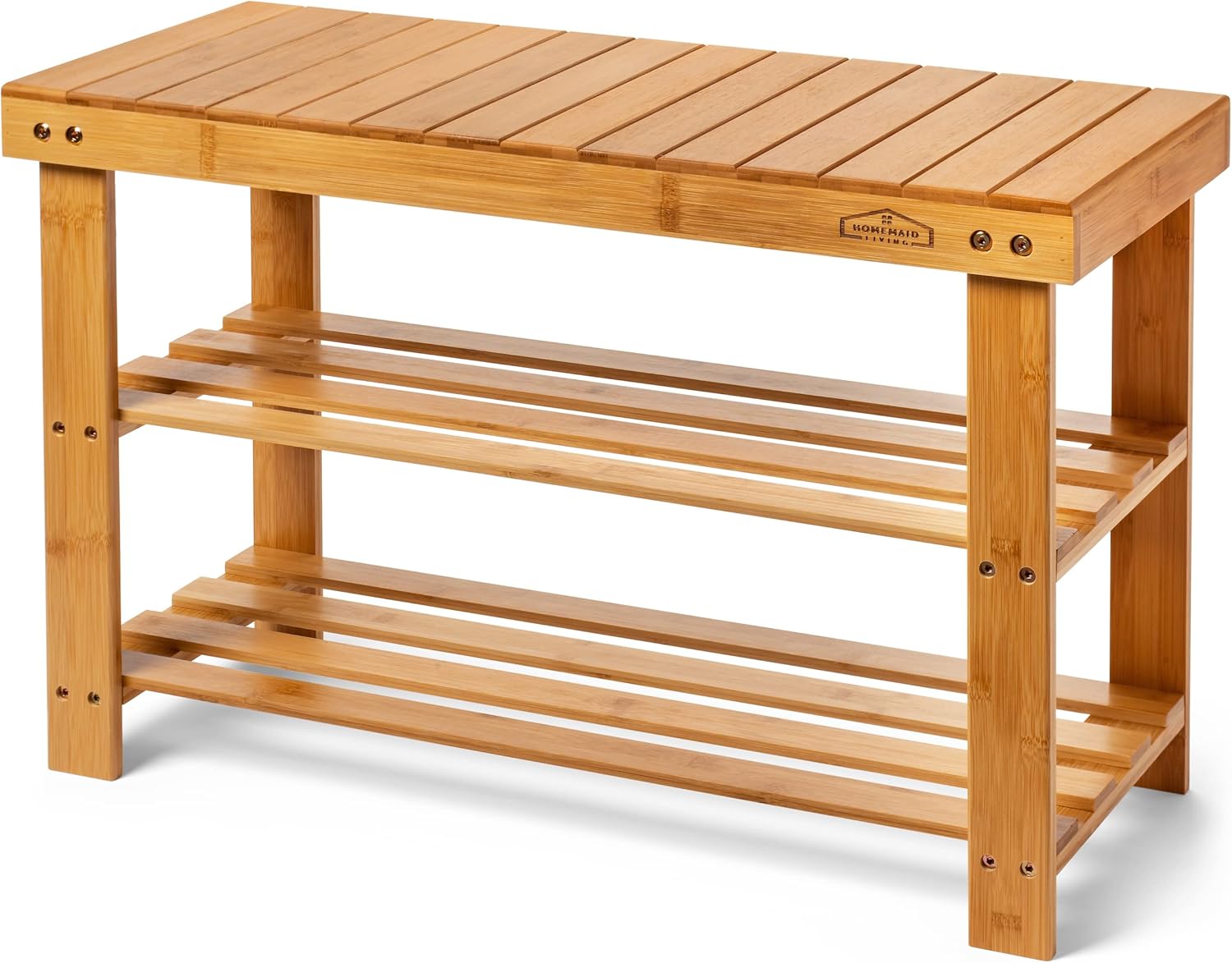 Homemaid Living Bamboo 3 Tier Shoe Rack Bench, Premium Organizer or Entryway Bench, Perfect for Shoe Cubby, Entry Bench, Bathroom Bench, Entryway Organizer, Hallway or Living Room(Natural Bamboo)