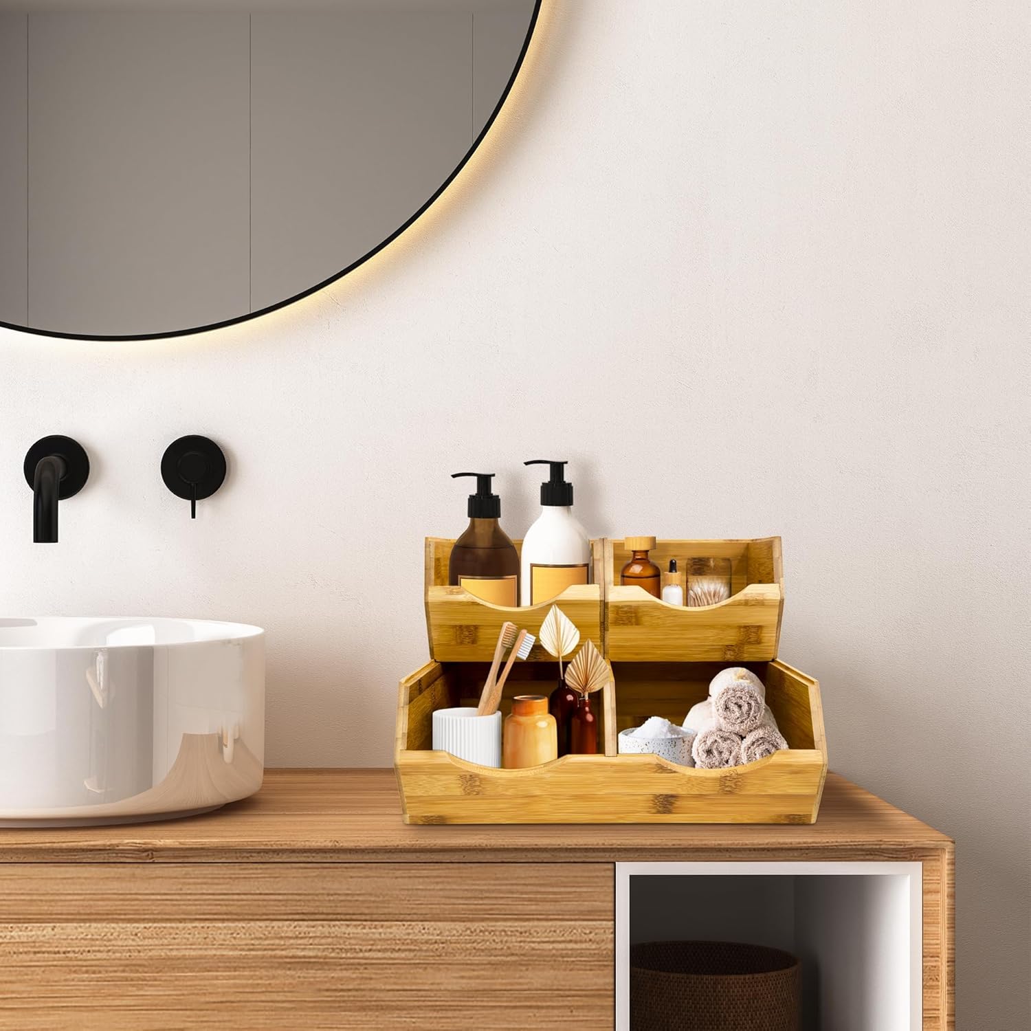 HOMESTEAD Bamboo Pantry Storage Bins – Stackable Baskets, Potato and Onion Storage for Pantry Organization, Set 3 Pieces