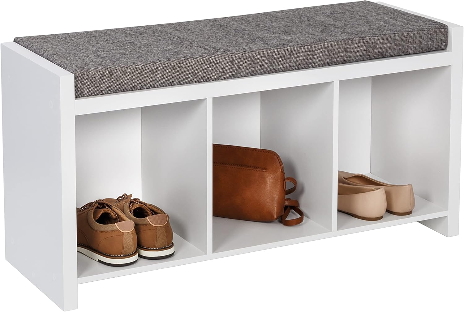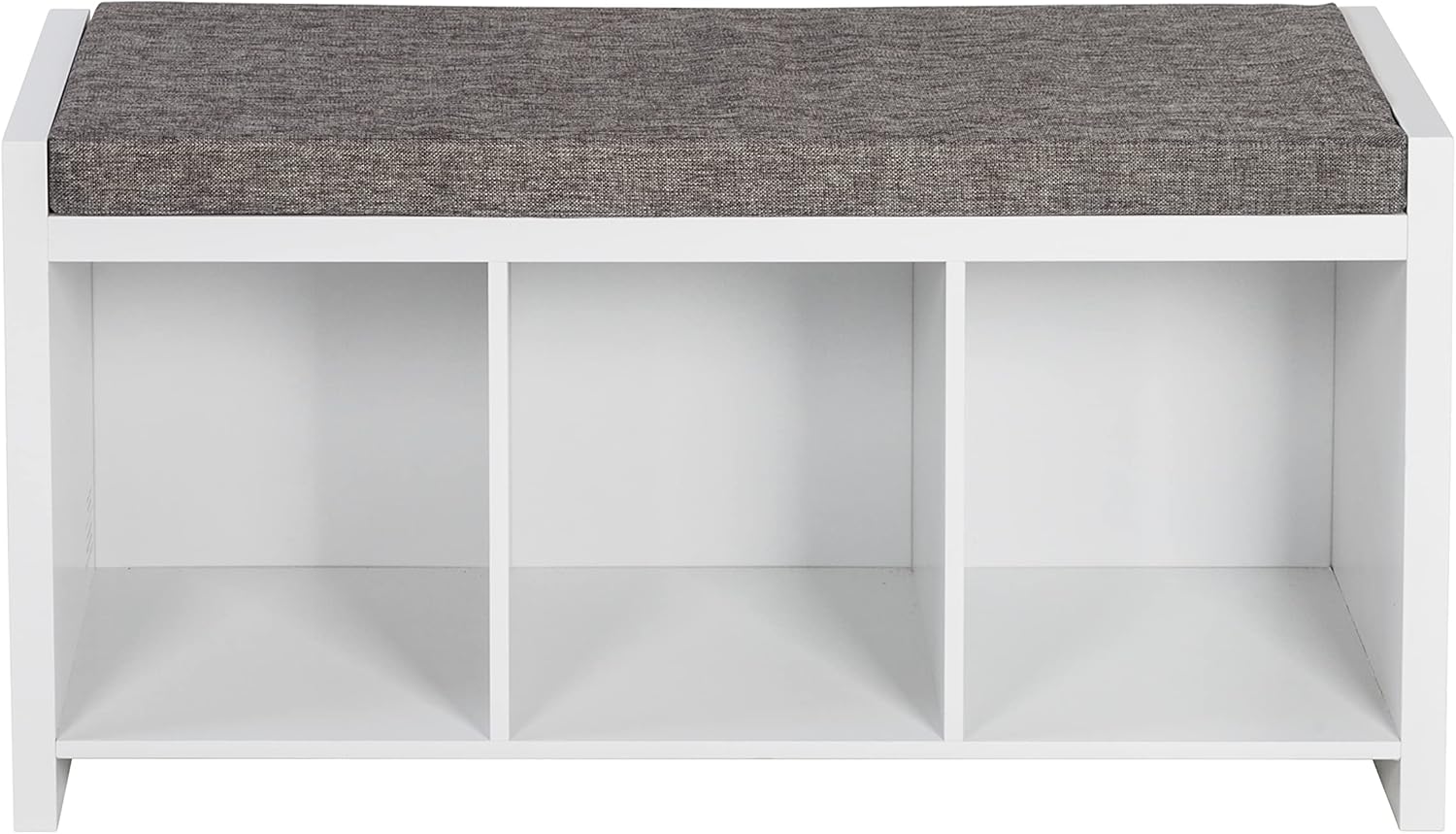 Honey-Can-Do Cube Organizer Bench with Shoe Storage and Seat Cushion, White SHF-09613 White