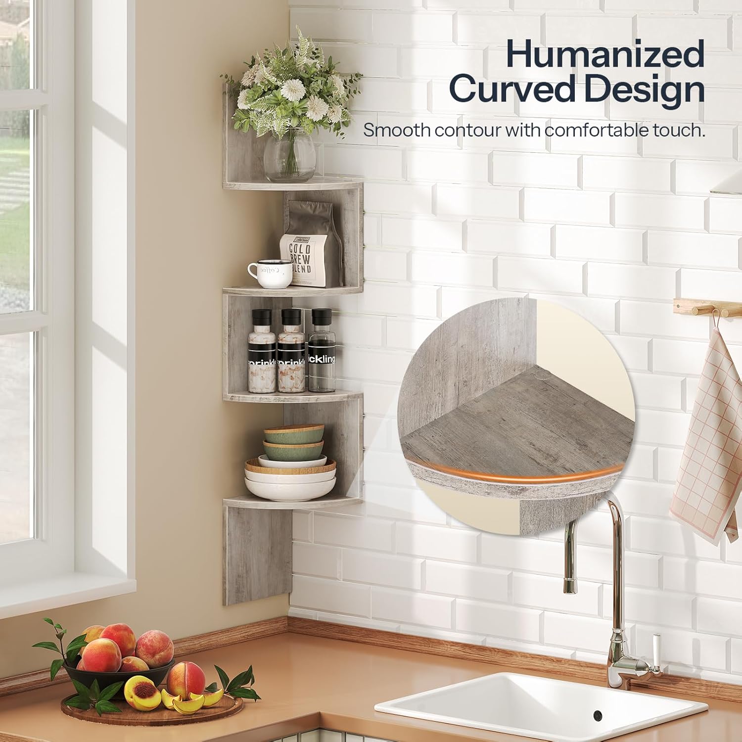 HOOBRO Corner Shelf Wall-Mounted, Set of 2 Floating Corner Shelves, 4-Tier Corner Bookshelves for Wall Decor in Living Room, Bedroom, Bathroom, Home Office, Greige BG25BJP201