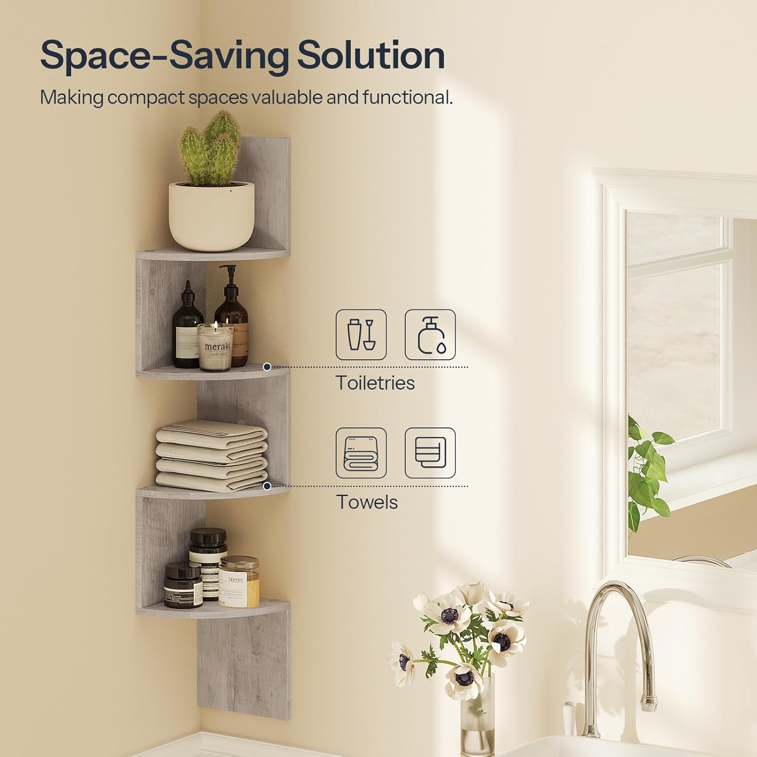Versatile Duo for Flexible Configurations: This 4-Tier corner shelf wall-mounted offers flexibility to suit your needs. Whether it’s for display in your living room, bedroom or for storage in your study, this set of 2 floating corner shelves creates a more organized space and enhances your lifestyle