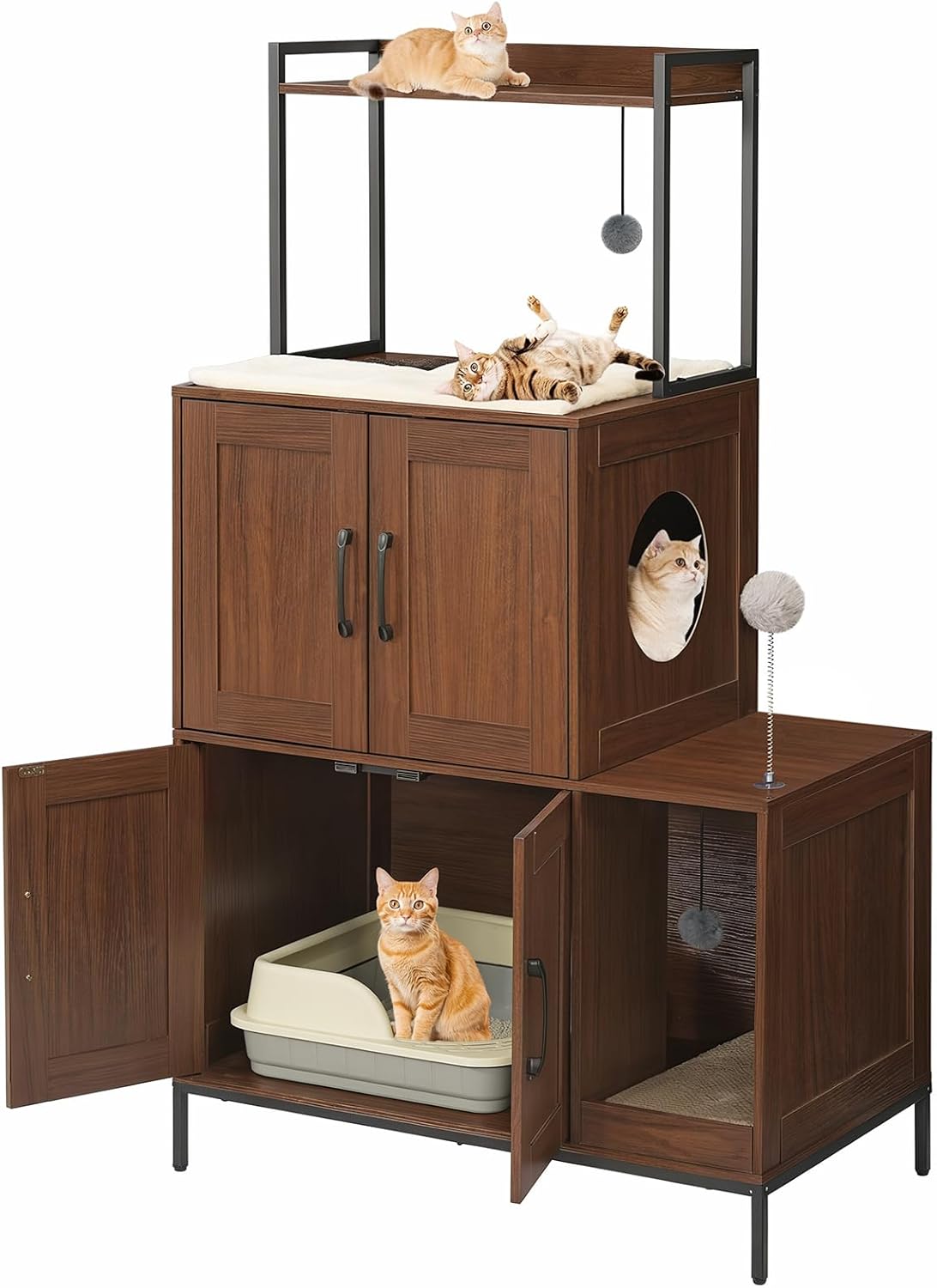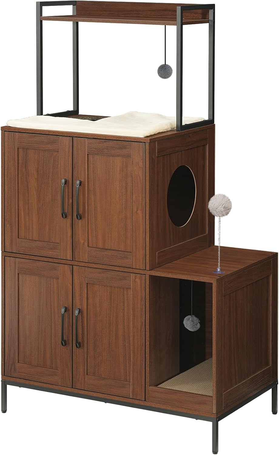 Interactive Fun with Toys: With 2 hanging balls and a toy ball, this wooden litter box enclosure caters to cats’ hunting instincts. It encourages exercise and boosts vitality, allowing your feline friend to unleash its energy and savor joyful moments