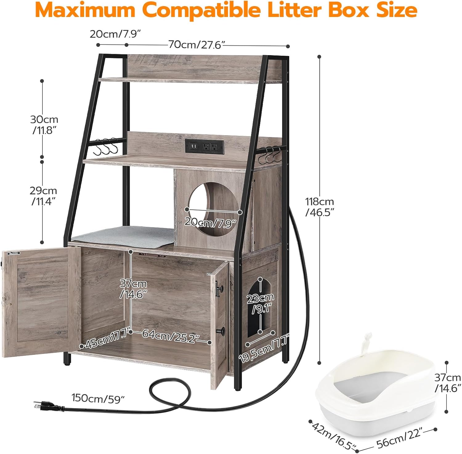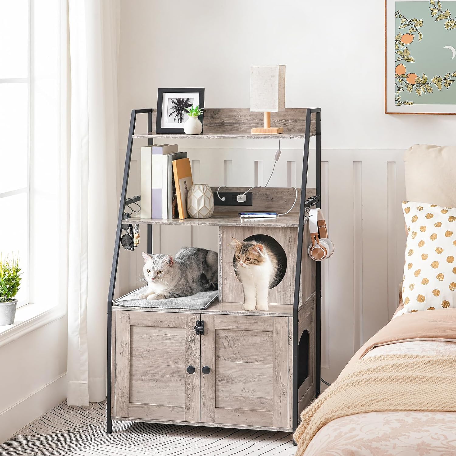 HOOBRO Litter Box Enclosure with 2 Storage Shelves, Tall Litter Box Furniture Hidden with Charging Station, Indoor Hidden Litter Box Furniture with Plush Mat, Greige BG70UMW01