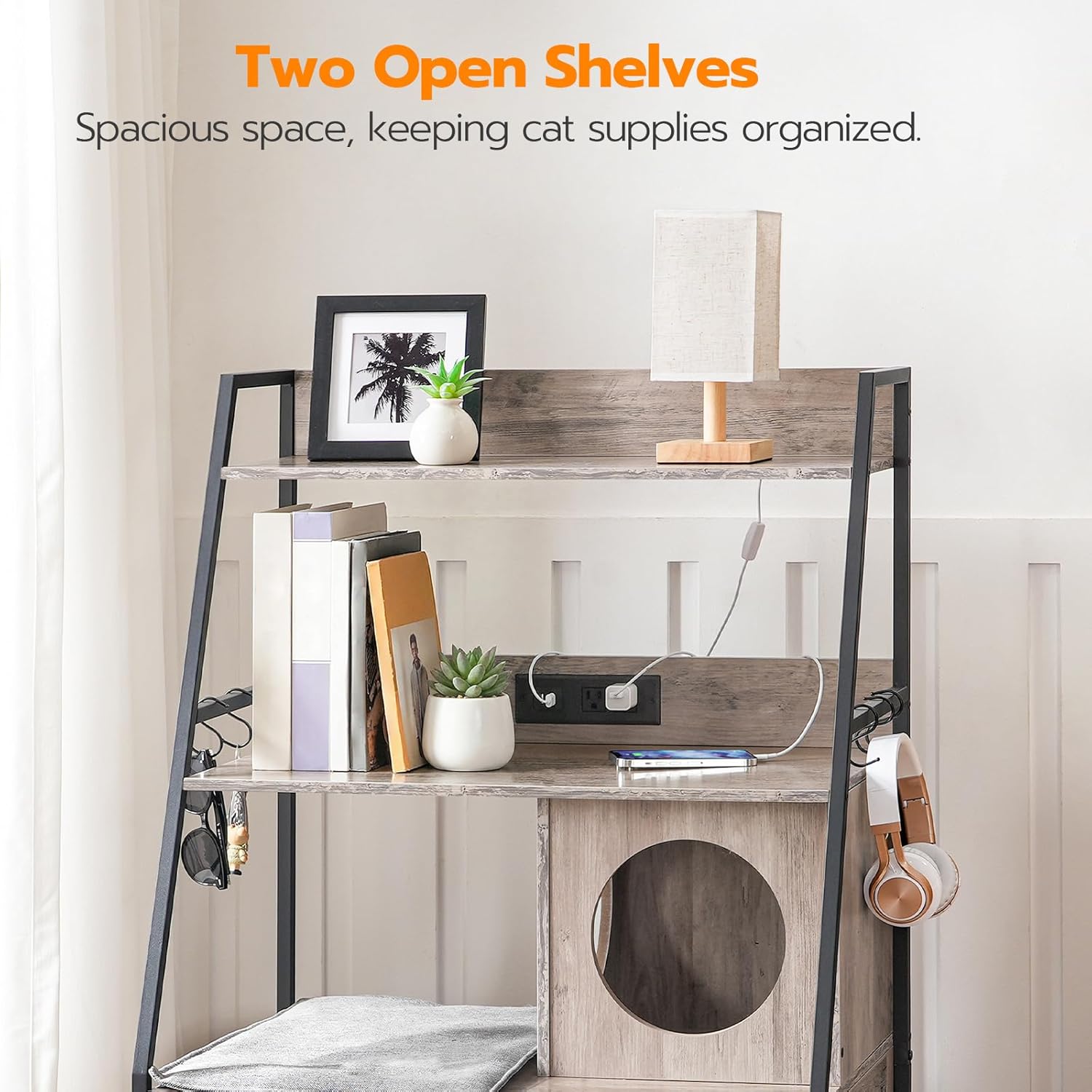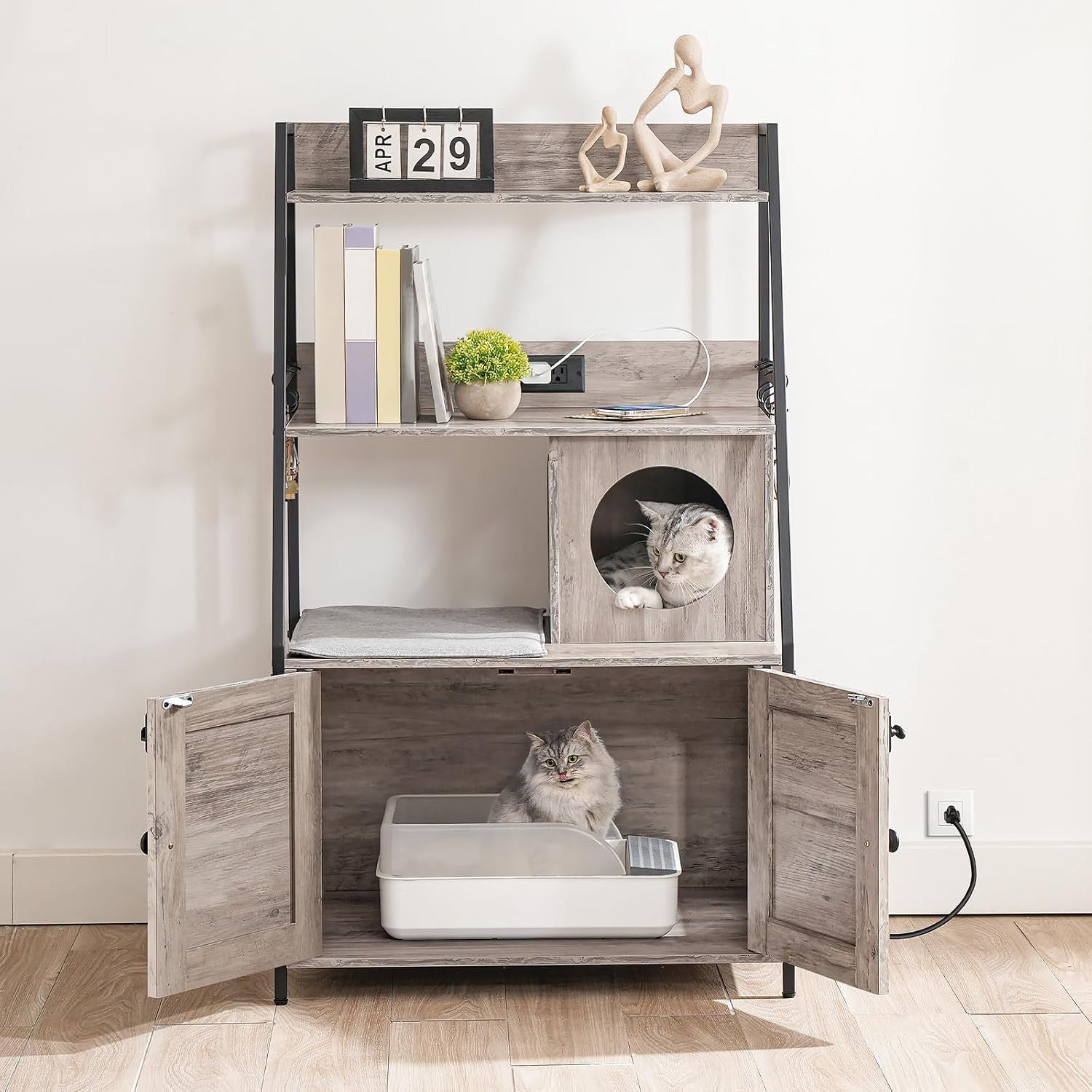 2-Tier Open Storage Space: The litter box cabinet upper open shelves can be used to store the cat food, cat litter or toys and place your books, photo frames or potted plants, everything being in right order without losing the elegance