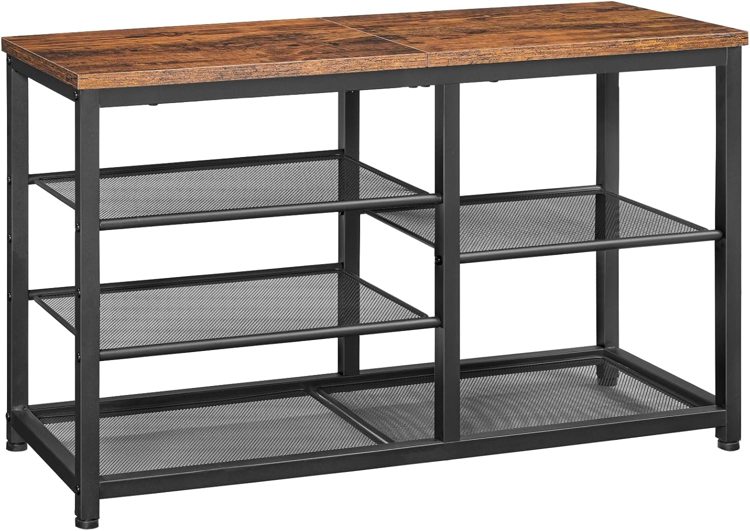 Sturdy and Heavy-Duty: The shoe bench is constructed from a solid metal frame, fine mesh panels, and high-quality particleboard for enduring sturdiness with adjustable feet for stability on any floor. The top bears up to 300 lb, reliable for daily use