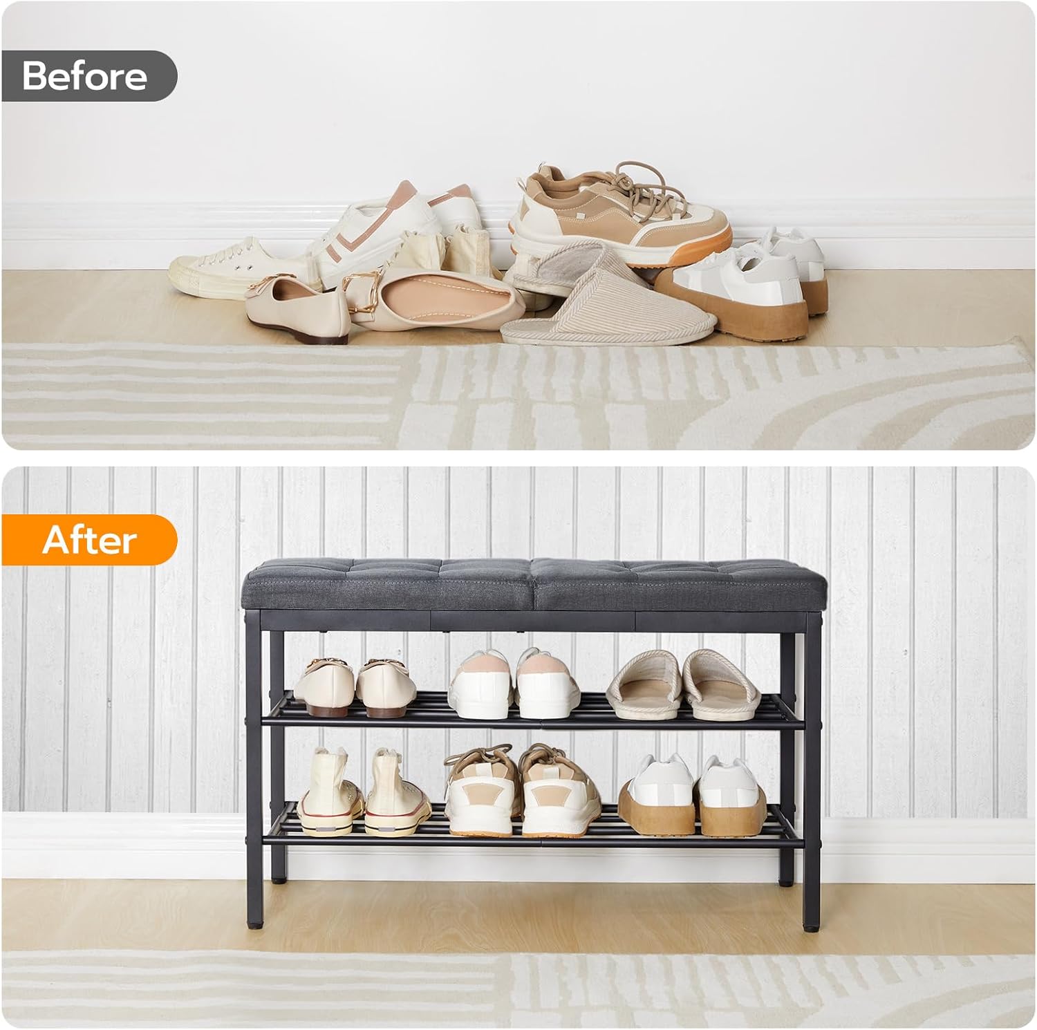 Super Storage: Thanks to its size: 29.5″L x 12″W x 18.1″H, this shoe rack bench can easily hold 6-8 pairs of shoes. It can also store various daily items, creating a tidy home environment with more space