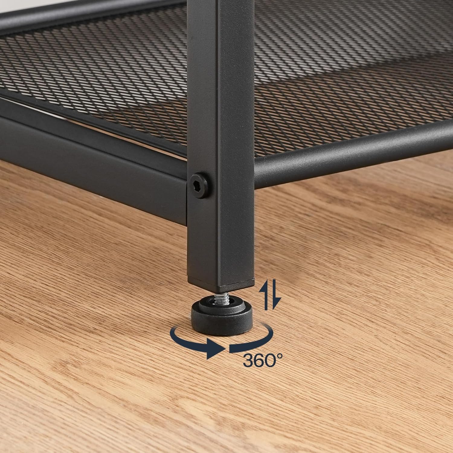3-Tier Shoe Rack: A 2-layer metal mesh rack beneath the entryway bench holds up to 4 pairs of frequently worn shoes. Fine mesh with 5.5-5.7 inch spacing per tier securely stores high heels, storage boxes, and other items, keeping the entrance tidy