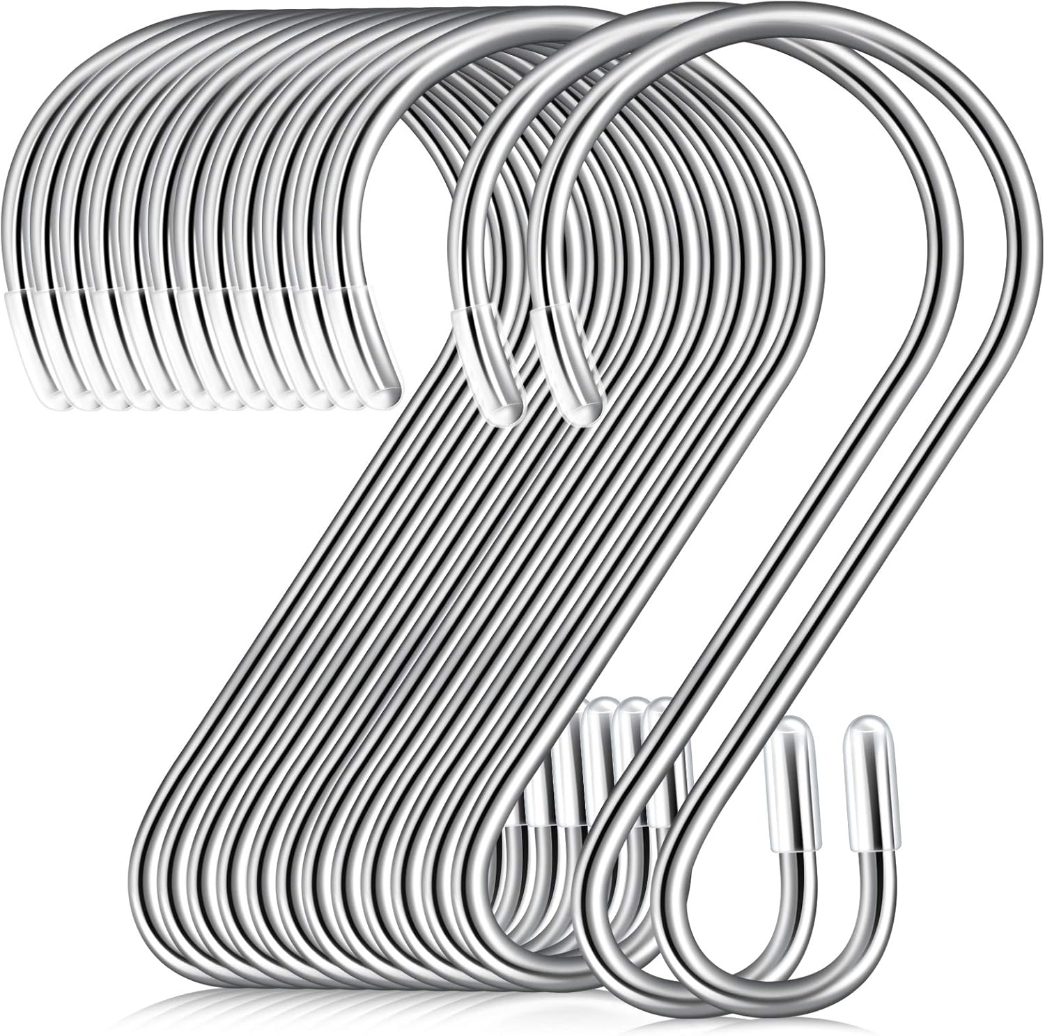 Hotop 36 Pcs 3.15 Inch S Shaped Stainless Steel Hooks Metal Hanging Curtain Hooks Pan Pot Holder Rack for Hanging Pot, Pan, Cups, Plants, Bags, Jeans, Towels(Silver)