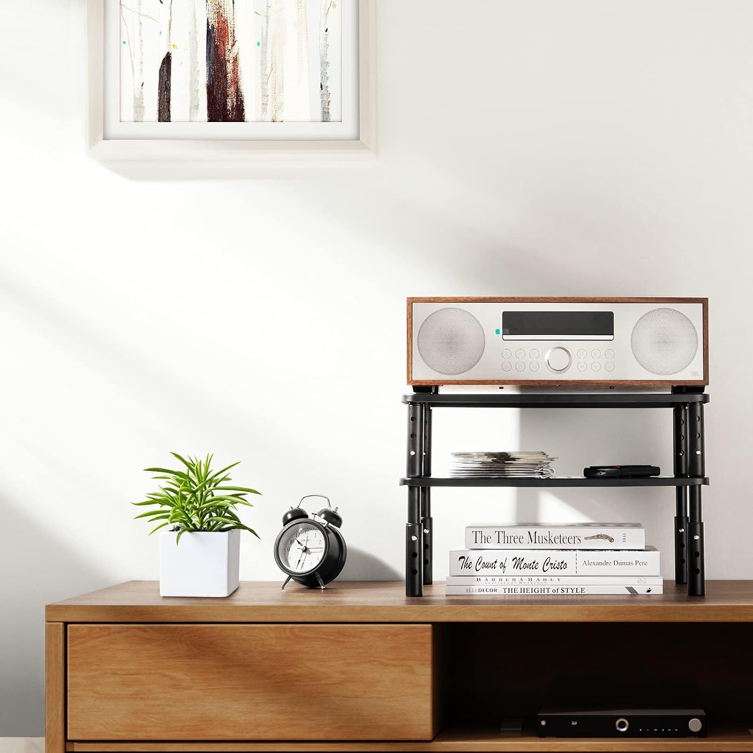 DESKTOP ORGANIZER: This computer monitor stand provides 14.57” x 9.25” storage space underneath the platform to organize office supplies. Stack two monitor stands together to double the functionality of your workspace.