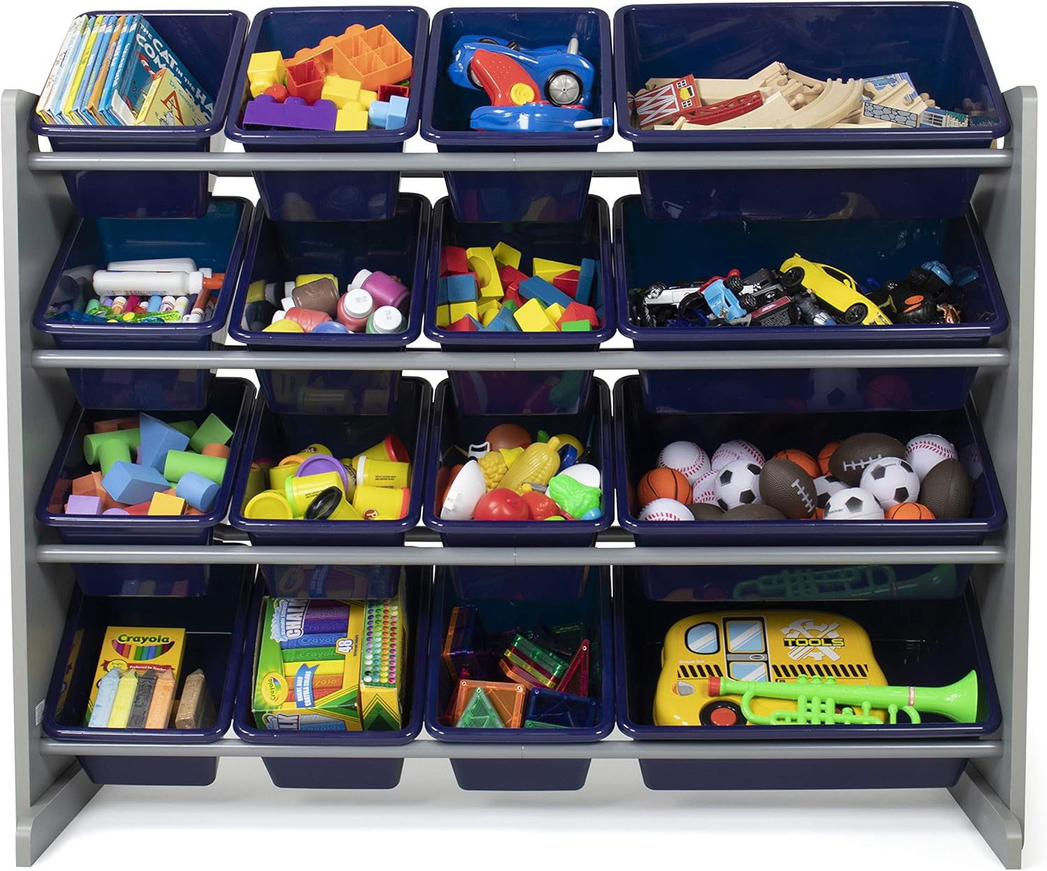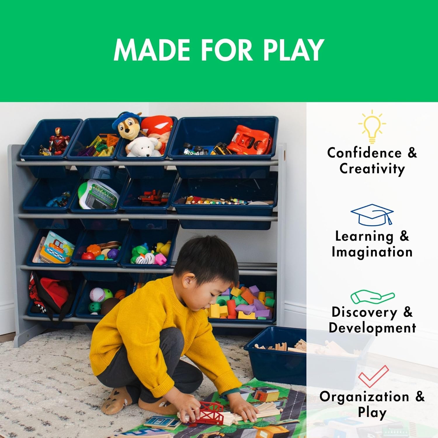 Humble Crew Supersized Toy Storage Organizer with 16 Removable Bins, Grey/Navy – Large Toy Storage for Toddlers Ideal for Kids’ Rooms, Playrooms, and Nurseries – Modern Toy Bins for Kids