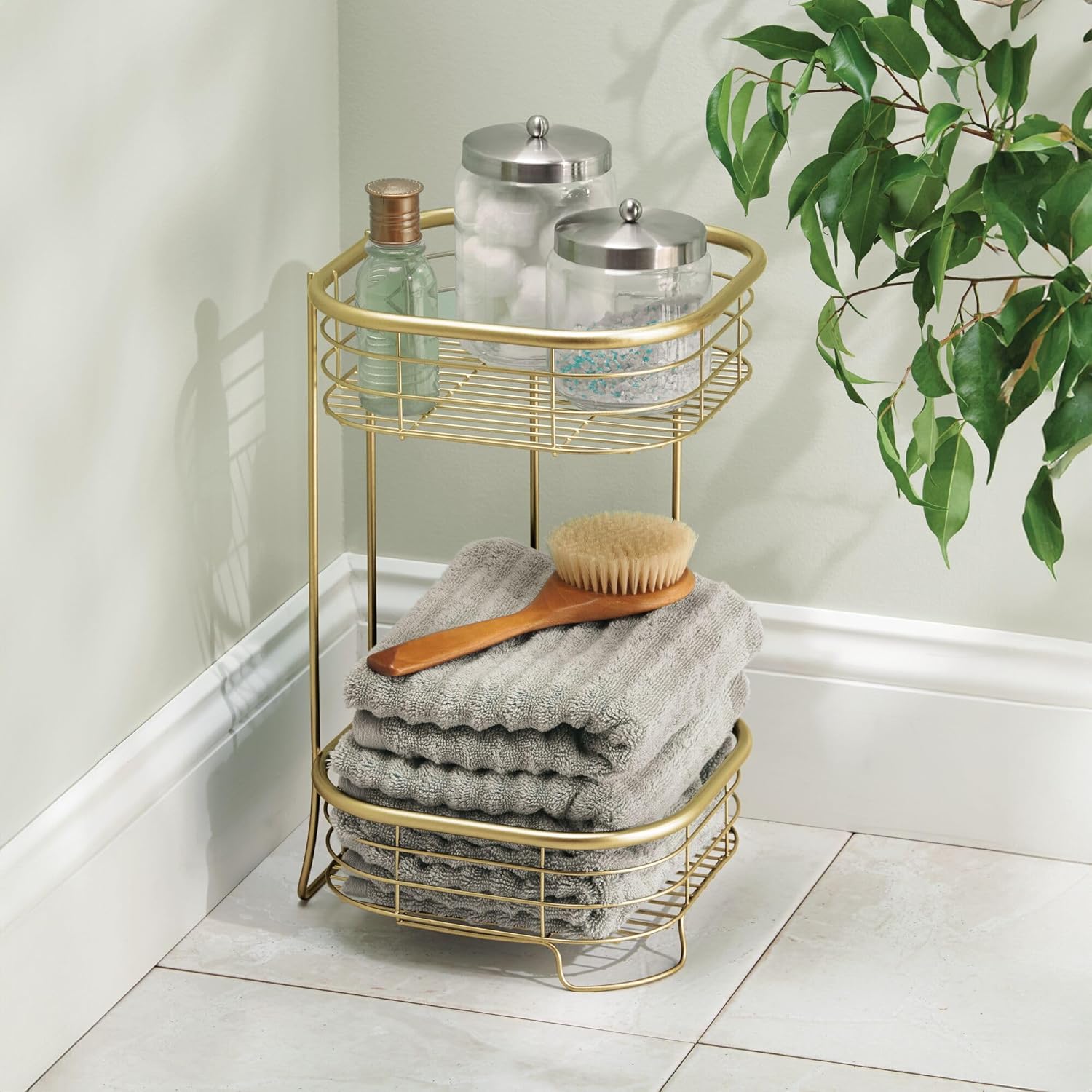 VERSATILE STORAGE – Keep shower and bathroom essentials close at hand with the Forma 2-Tier Shower Caddy Organizer; Simply styled, this freestanding design provides 2-tiers of storage, giving your most reached-for bath accessories a home; The square design fits neatly into shower or tub corners to maximize storage space; A durable metal frame with basket-style shelves easily corral hair tools, makeup, shampoo bottles, accessories, and more