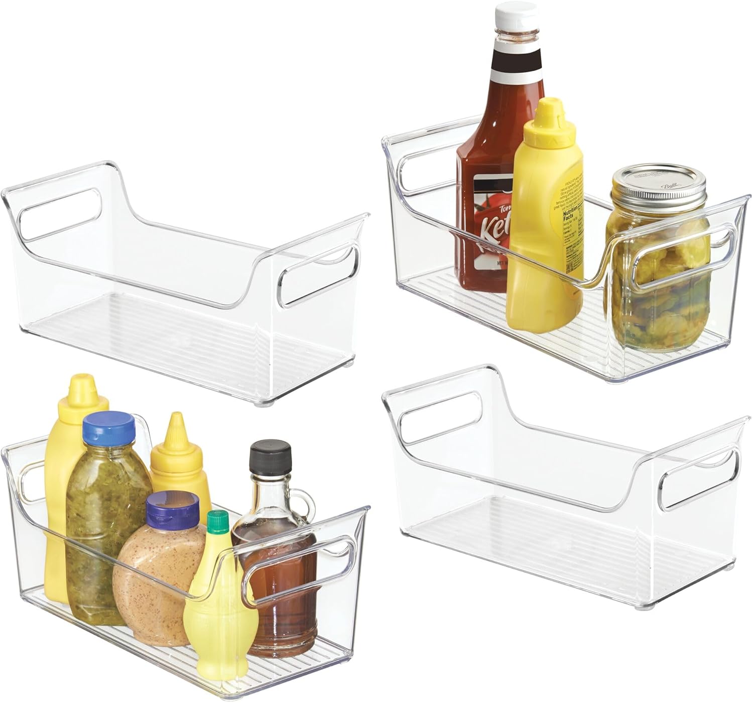 iDesign Condiment Organizer for Fridge – Plastic Fridge Organizer Bins with Handles, Set of 4, Clear