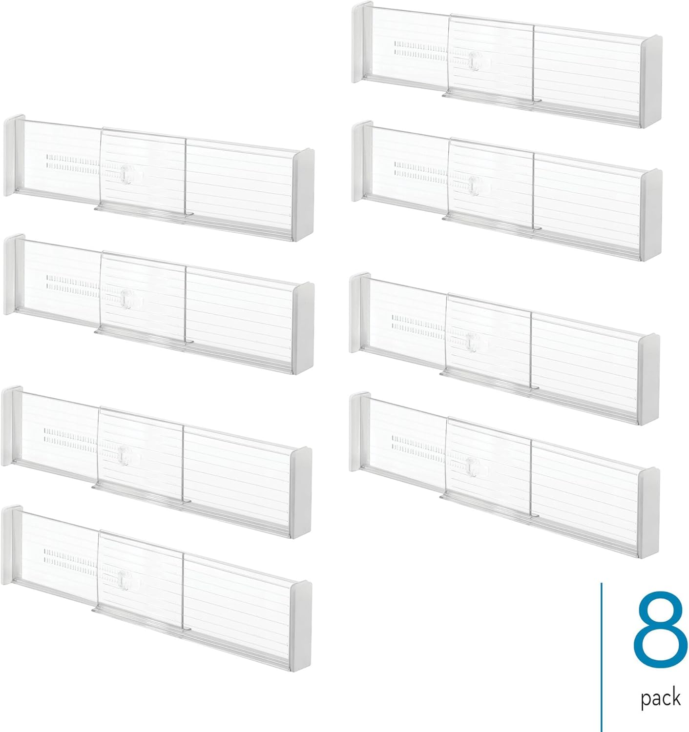 iDesign Plastic Adjustable Deep Kitchen or Dresser Drawers-Set of 8-Clear Dividers