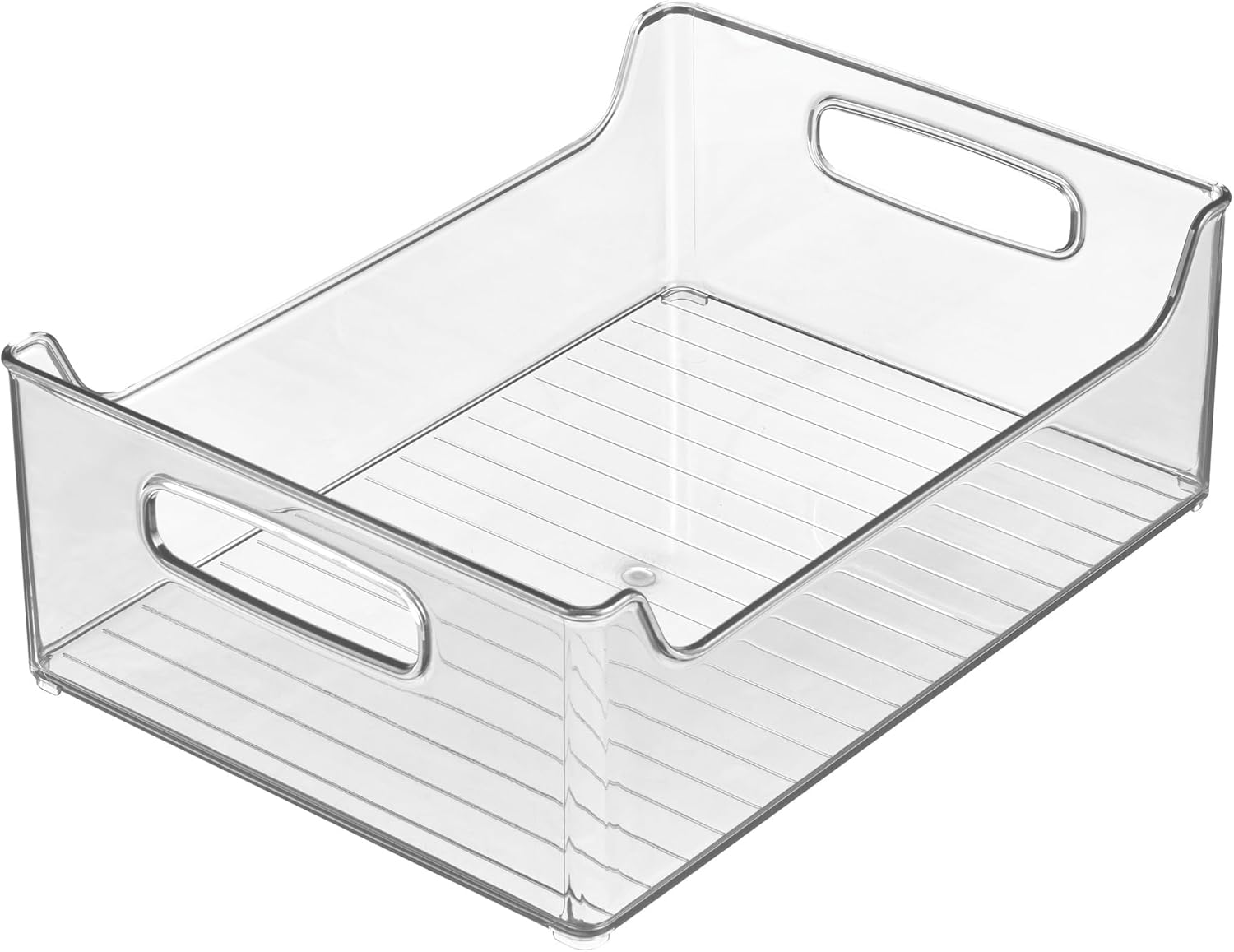 Upgrade your kitchen organization and storage with the iDesign Plastic Kitchen Storage and Fridge Organizer Bin. It’s a quick and easy addition to your pantry, cabinet, fridge, or freezer that will bring functional beauty and organized style. The versatile clear storage bin is ideal for use in the fridge and freezer to store produce, meat, cheese, drink boxes, food packets, potatoes, apples, onions, and more, or to store dry goods in the pantry and cabinet. Easily access or reorganize your items with the integrated handles on this fridge bin. The transparent design of the clear organizing bins ensures items are always visible and accessible. Measuring 10” x 5” x 12”, the food storage container is just the right size to store food in your fridge, freezer, pantry, or cabinet. Use several as clear storage bins to store kitchen utensils and tools, cleaning supplies, cosmetics, and crafts, or for extra organization in your closet or laundry room. Made with durable BPA-free clear recycled plastic, this kitchen storage container stands up to everyday use. With iDesign, you can live simply and sustainably every day.