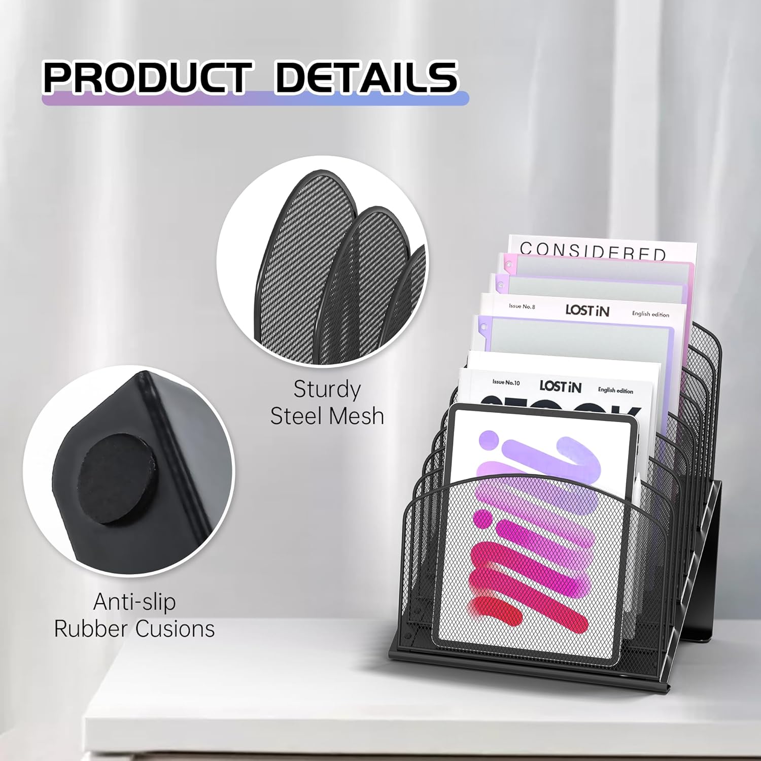 Be the first to review “Inclined Desk File Organizer Metal Desk Magazine Folder Holder with 8-Section Vertical Compartments Rack File Organizer for Office, Home, School, Black”