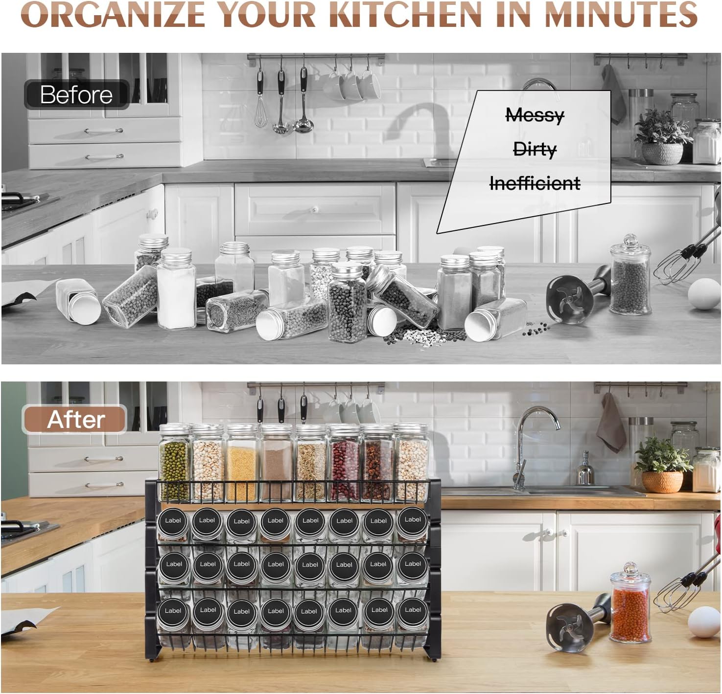 ★【SPACE-SAVING & TIME-SAVING】A pinch of cinnamon, a dash of cumin, and generous helping of oregano — herbs and spices are a vital part of any cook’s arsenal. Spice racks are a space-saving kitchen tool. If you have a large collection of seasonings, a spice rack organizer will make your life much easier, saving you countless minutes you would have spend rooting in your cupboard to find that elusive jar of sage