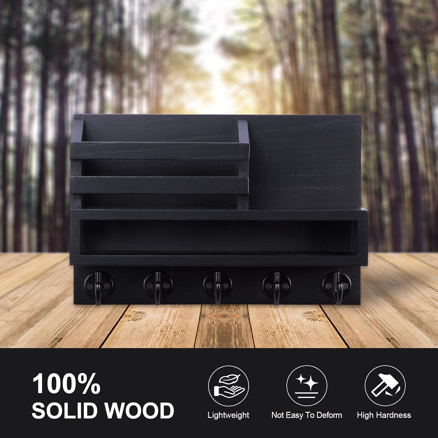 【QUALITY WOOD】The wooden key mail holder for wall crafted from sturdy solid wood with a carefully sanded finish, very textured to the touch. The wood is lightweight yet resistant and won’t bend or crack easily.