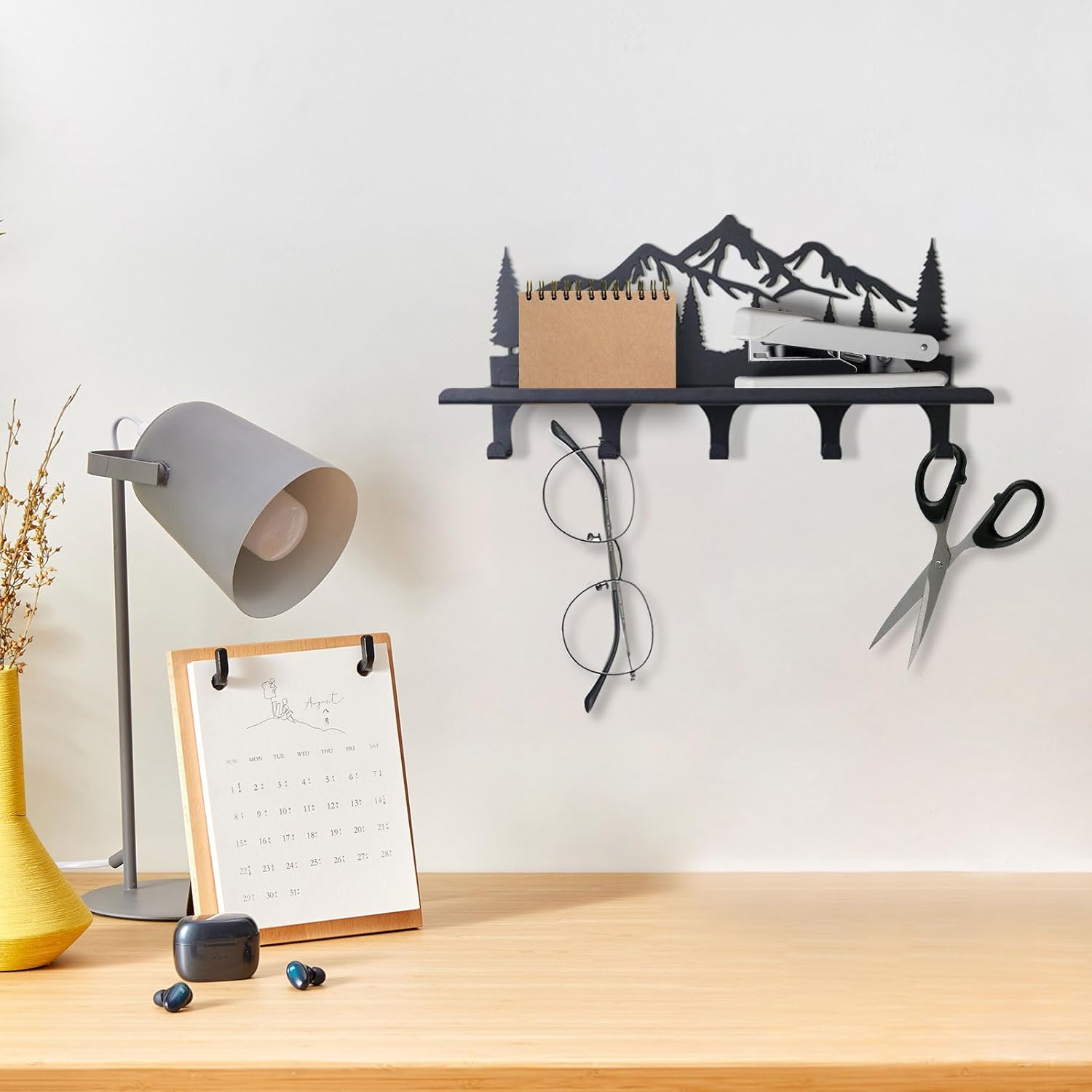Key Holder for Wall, Metal Decorative Wall Mounted Mountain Key and Mail Holder with Shelf, 2 in 1 Key Hooks for Entryway, Front Door, Hallway, Key Organizer and Key Rack (10 Inches)